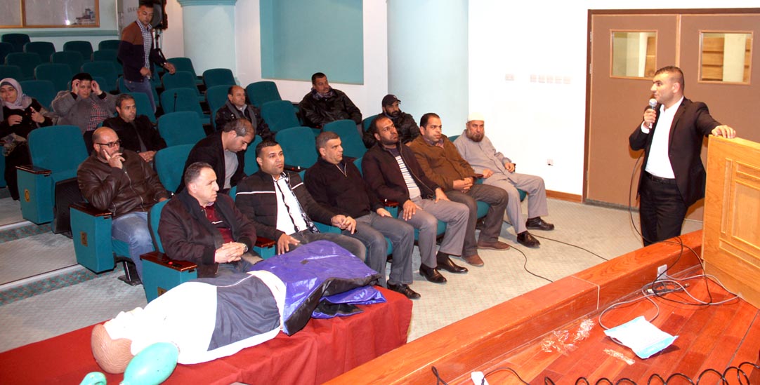 وقدم السيد غنيمات شرحا مفصلا حول طبيعة واهمية الانعاش القلبي الرئوي مستعرضا الخطوات الاساسية للانعاش القلبي التي يجب اتباعها عند مواجهة اية حالة طارئة وتقديم المساعدة الفضلى لإنقاذها ، منوها الى ضرورة الاسراع في اجراء الاسعاف للحالة كون الوقت مهم في تلك الحالات.