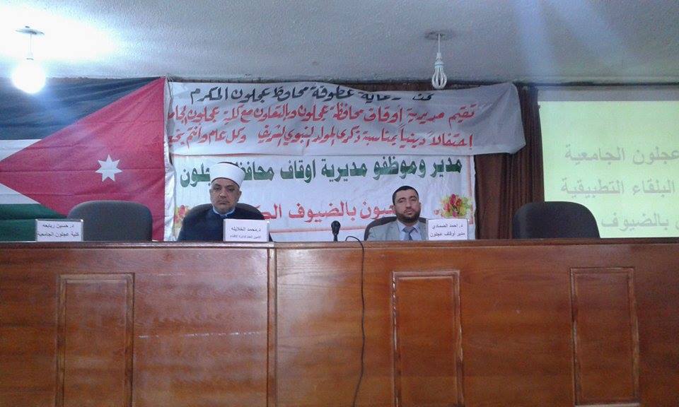 مندوباً عن محافظ عجلون رعى نائب المحافظ محمود السعد الإحتفال الذي نظمته مديرية اوقاف محافظة عجلون بالتعاون مع كلية عجلون الجامعية /جامعة البلقاء التطبيقية بمناسبة ذكرى المولد النبوي الشريف بحضور مدراء دوائر حكومية وامنية وعدد من اعضاء الهيئتين الادارية والتدريسية قي كلية عجلون الجامعية وخطباء وأئمه المساجد وابناء المجتمع المحلي في قاعه كلية عجلون الجامعية.