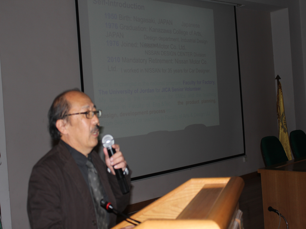 وتأتي هذه المحاضرات ضمن خطة وضعتها الكلية للاستفادة من الخبرات اليابانية الموجودة في الأردن وخلق نوع من التواصل ما بين الطلبة ومثل هذه الخبرات ، وقد أشار المحاضر أن أي عملية تصميم لأي سيارة يجب أن تأخذ بعين الاعتبار الناحية البيئية والناحية الاقتصادية والزبون . كما أوضح أن تصميم أي سيارة يحتاج بالمعدل الى سنة ونصف