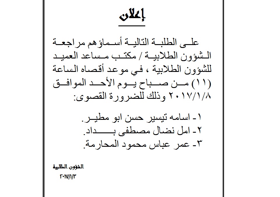 إعـــلان هام لتسليــم وثائـــق الطلبـــة المستجــديــن بواسطة