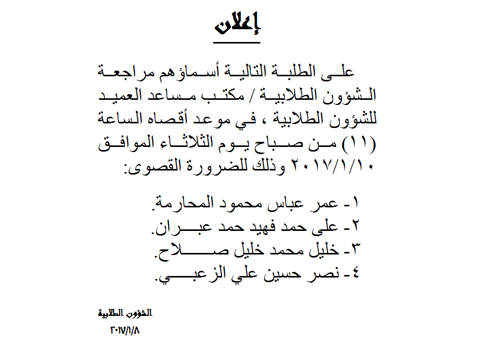 إعـــلان هام لتسليــم وثائـــق الطلبـــة المستجــديــن بواسطة