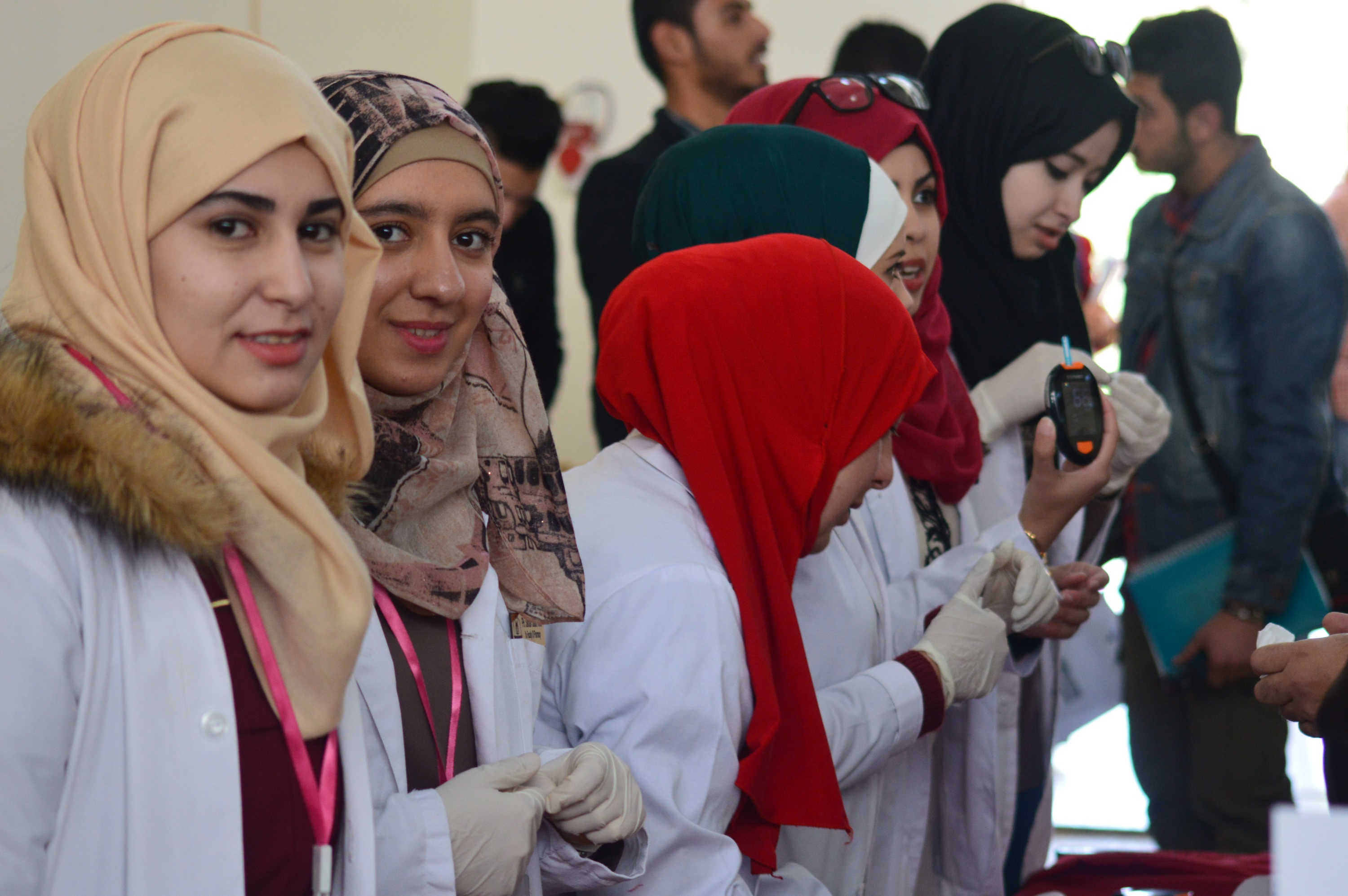 وقد اقيم اليوم الطبي بأشراف مجموعه من طلبة الكليه/تخصص التغذيه والتصنيع الغذائي ومجموعه من طلبة جامعة اليرموك/تخصص الصيدله.