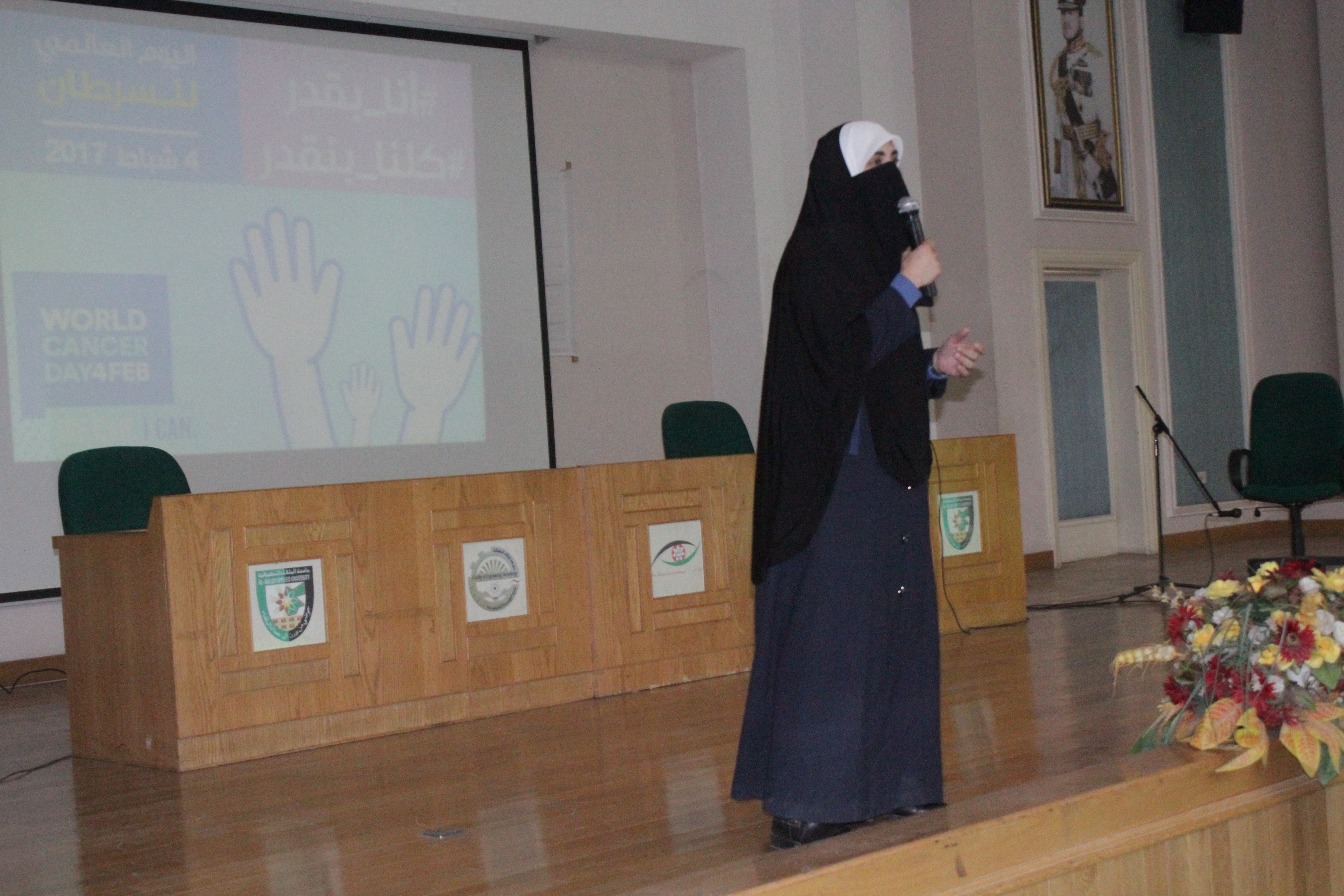 في البداية تحدثت الدكتورة ميس سمير عن مرض السرطان وأعراضه وكيفية تجنبه وأهمية الكشف المبكر عنه وكيفية التعامل معه في حالة تشخيصه .