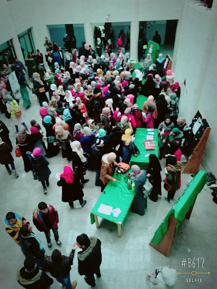 نظمت كلية العلوم بالتعاون مع الجمعية العلمية الطلابية حملة بعنوان" لانك غير 2 " للحجاب الشرعي وذلك على مدرج كلية العلوم في الجامعة.