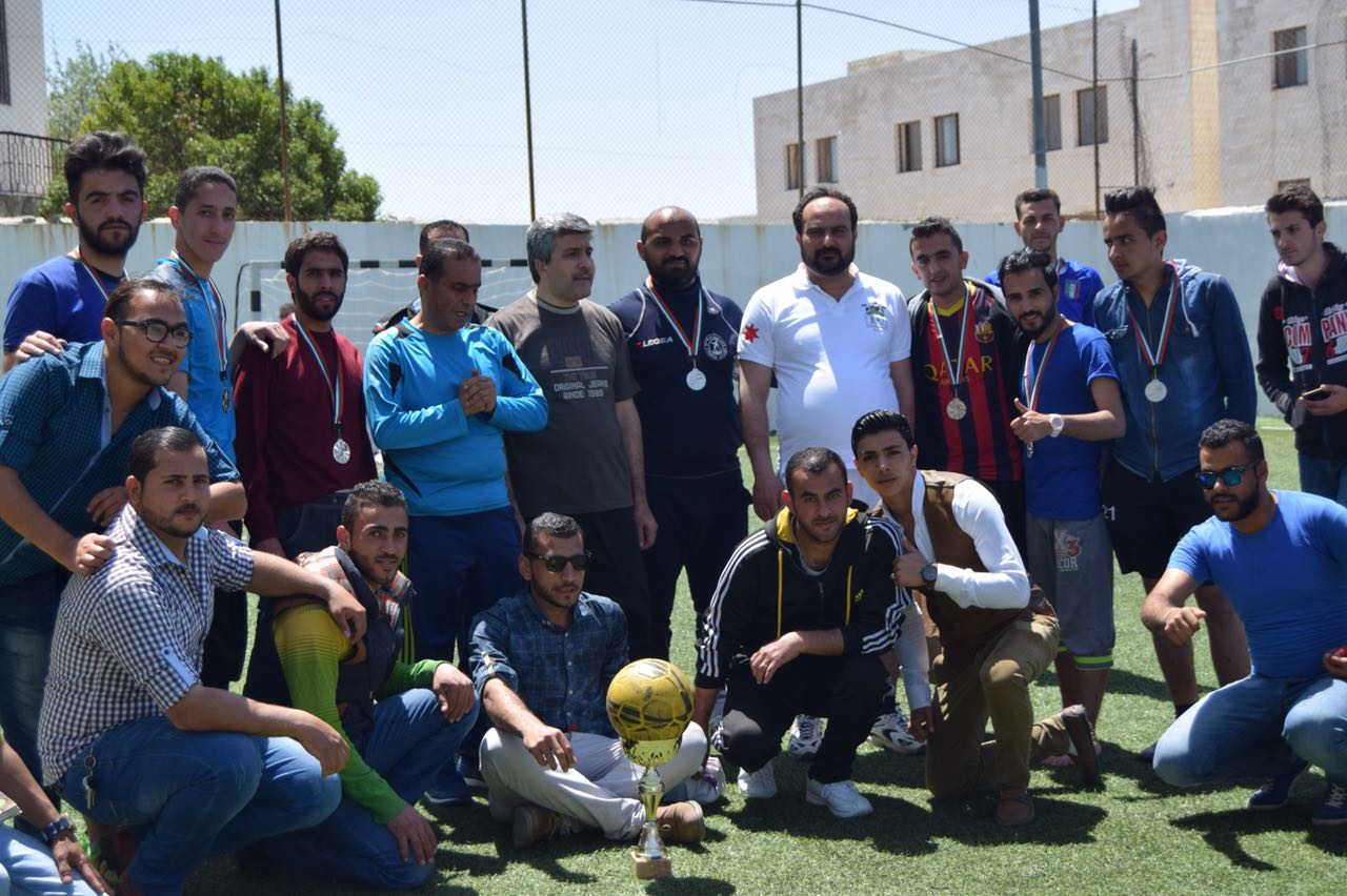 تحت رعاية الأستاذ الدكتور عبد المطلب الخضراوي عميد كلية الحصن الجامعية فقد تم تنظيم بطولة كرة القدم لطلاب كلية الحصن الجامعية وذلك ضمن احتفالات جامعة البلقاء التطبيقية بعيد ميلاد جلالة الملك عبدالله الثاني بن الحسين المعظم .وقد التقى في المباراة الافتتاحية فريقي تخصص الهندسة الميكانيكية (1) وفريق تخصص التغذية والتصنيع الغذائي وقد انتهت المبارة بفوز فريق تخصص التغذية والتصنيع الغذائي بهدفين مقابل هدف واحد . حيث استمرت البطولة لثلاثة أيام من تاريخ 16 – 18/4/2017 . وقد تخلل البطولة مباراة استعراضية جمعت أعضاء الهيئتين التدريسية والإدارية انتهت بالتعادل الايجابي ثلاثة أهداف لكل فريق . وقد لعب على النهائي فريقي تخصص الهندسة الميكانيكية وفريق تخصص الهندسة الكهربائية وانتهت المبارة بفوز الهندسة الميكانيكية بهدفين مقابل لا شيء وقام عميد الكلية بتتويج الفريق الفائز .