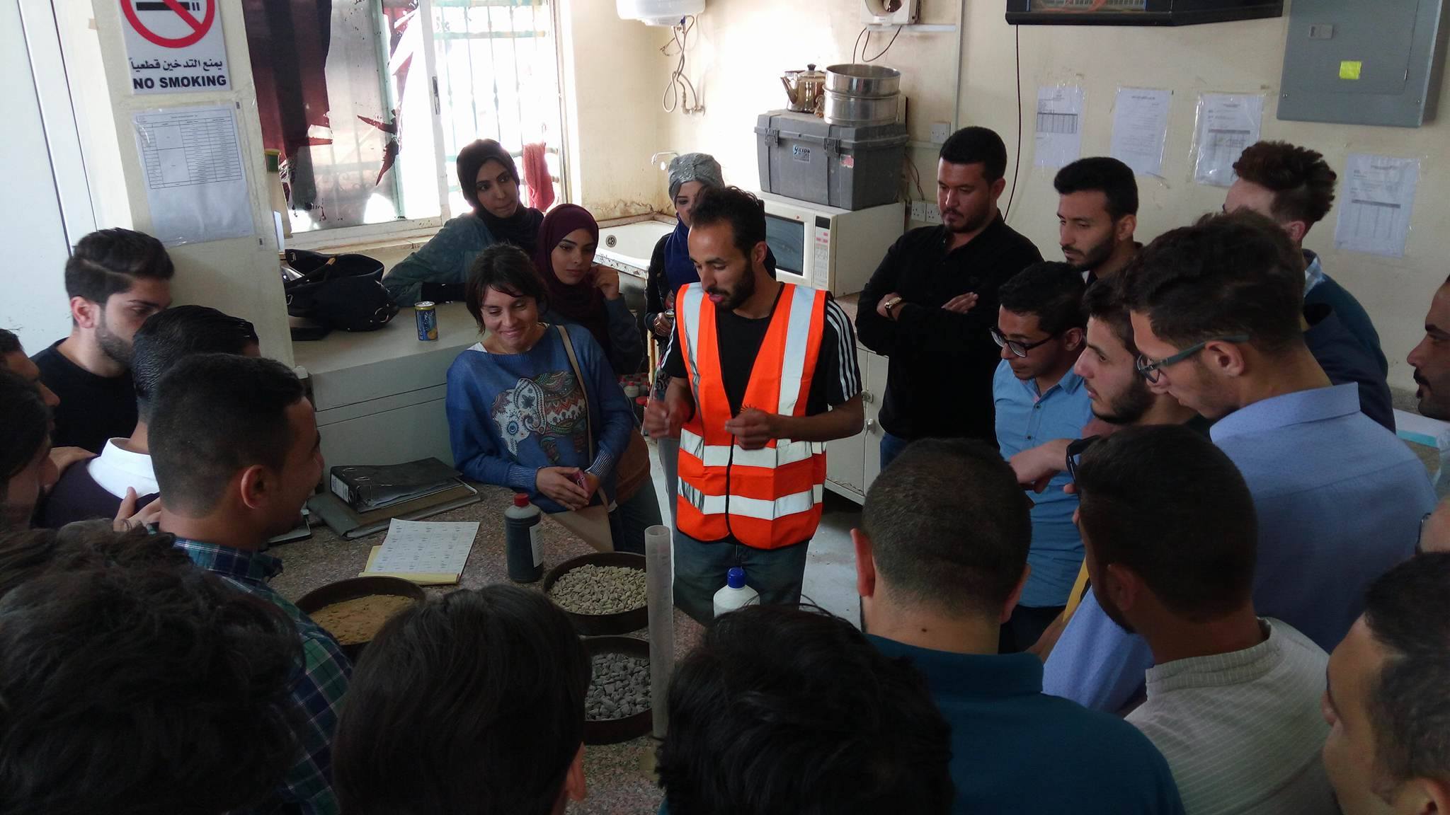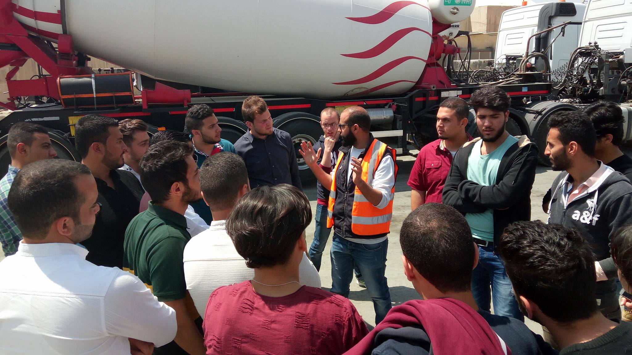 تم تسيير زيارة لمصنع المناصير للباطون الجاهز يوم الأحد الموافق 16/4/2017 بتنظيم من فريق "يَعْمُر" بالتعاون مع قسم الهندسة المدنية في جامعة البلقاء التطبيقية/المركز و كانت و بفضل من الله زيارة موفقة و مليئة بالمعلومات و الفائدة لطلاب مساق "خواص الخرسانة". حيثُ اطّلع الطلاب على الفحوصات المخبرية التي تُجرى على المواد المستخدمة في الخلطات الخرسانية و فحوصات قوة الكسر للخرسانة و مدى مطابقتها للمواصفات، كما و اطّلعوا على التقنيات الحديثة في تكنولوجيا خلط الخرسانة باستخدام برمجيات و أجهزة حديثة.