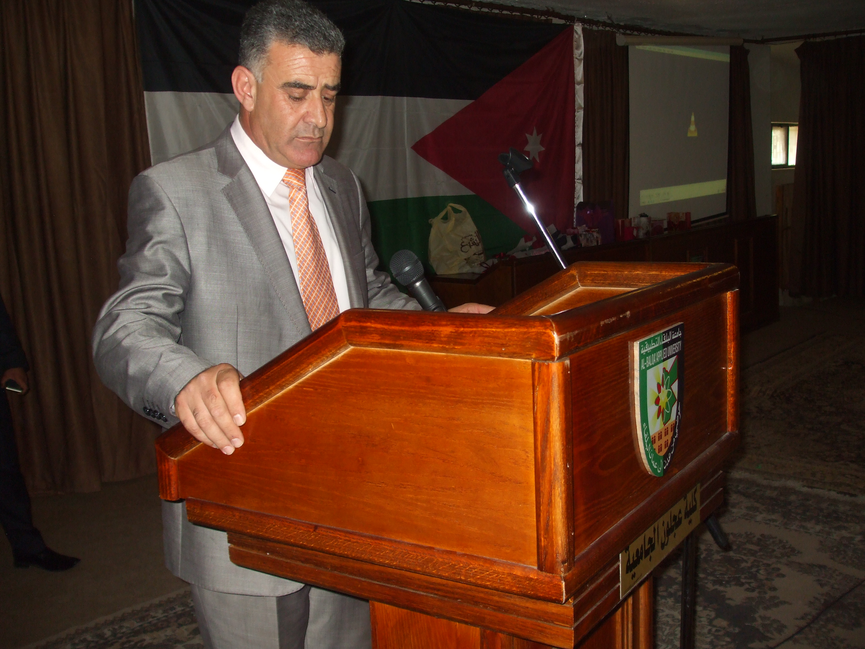 وبدأ الحفل بآيات من الذكر الحكيم ،والقى عميد الكلية الدكتور نضال الاحمد كلمة بهذه المناسبة أكد فيها على أهمية العلم والعلماء وانهم ورثة الانبياء وأن قدوتنا في طلب العلم هو رسول الله صلى الله عليه وسلم .واشارالى ان فلسفة جامعة البلقاء التطبيقية قد جمعت بين العلوم النظرية والتطبيقية وانها لم تغفل عن فتح تخصصات في علوم الشريعة والدراسات الإسلامية انطلاقا من قناعتها في غرس مبادئ الاسلام السمحة في عقول ونفوس طلبتها لاعداد المواطن الصالح وغرس العقيدة الأسلامية الصافية من كتاب الله .