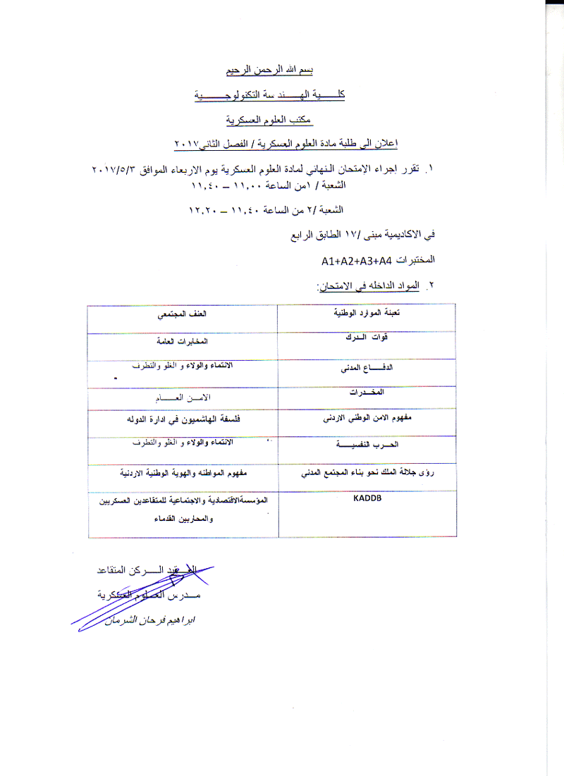 اعلان الى طلبة العلوم العسكرية بكالوريوس