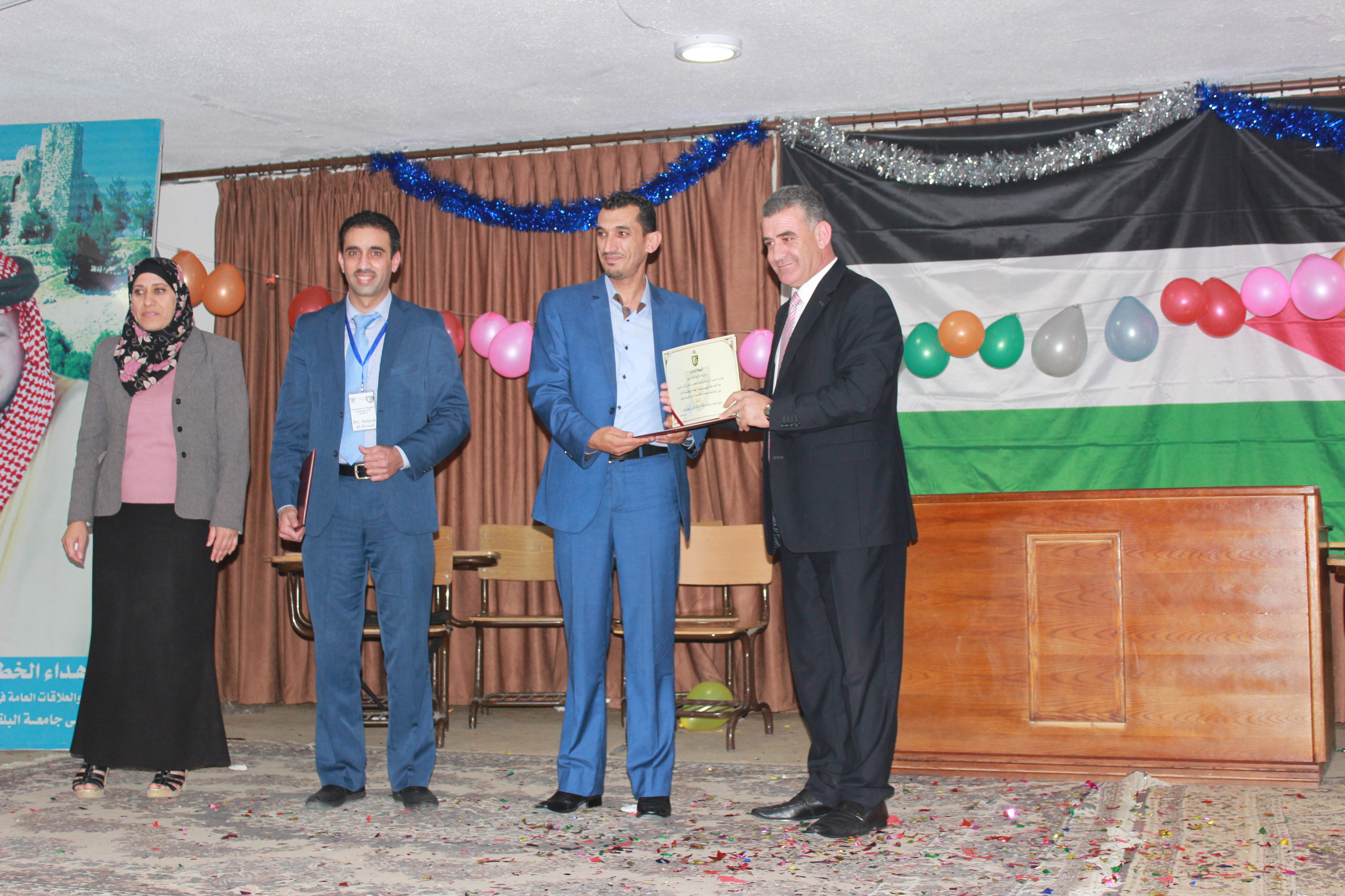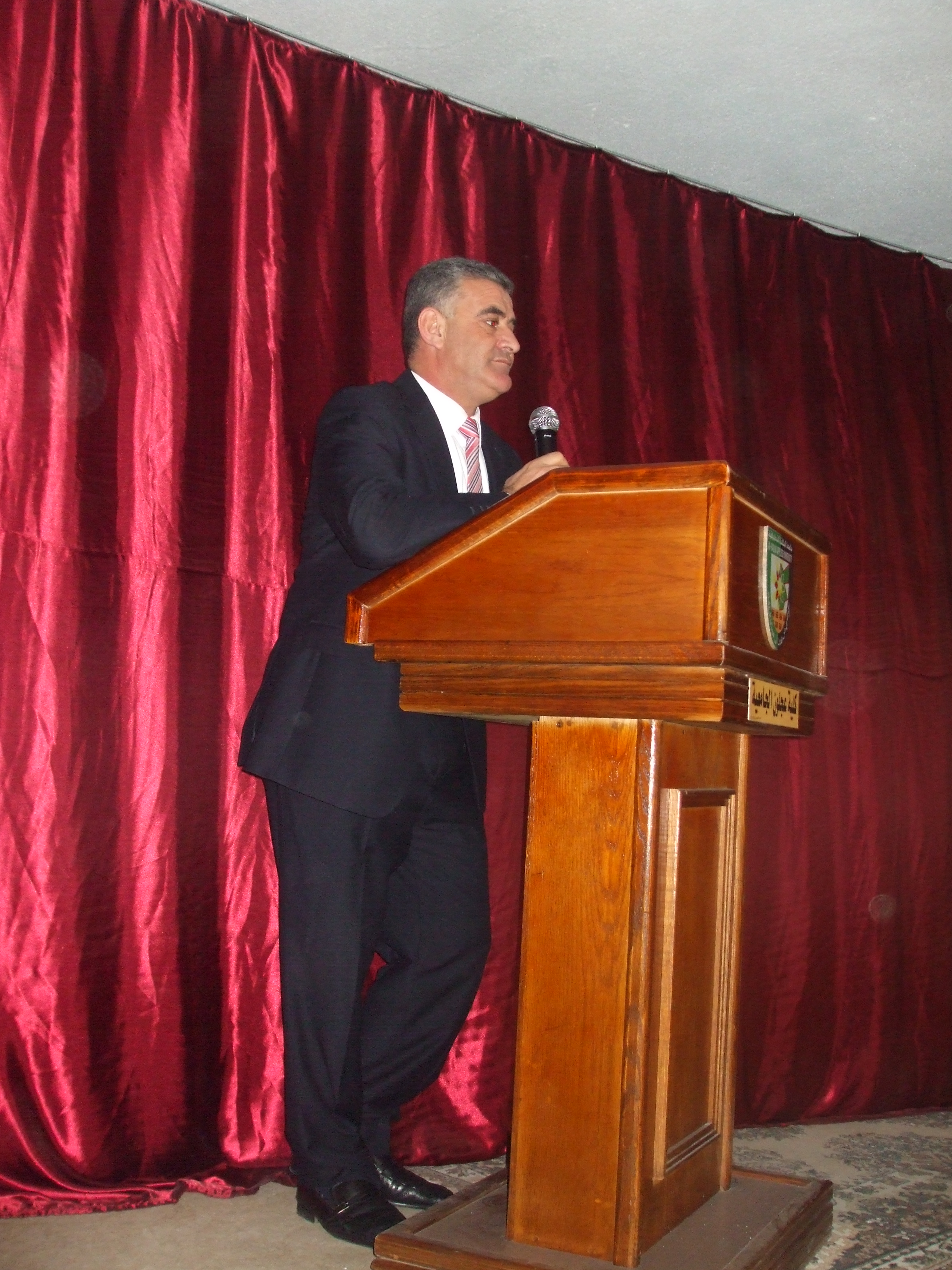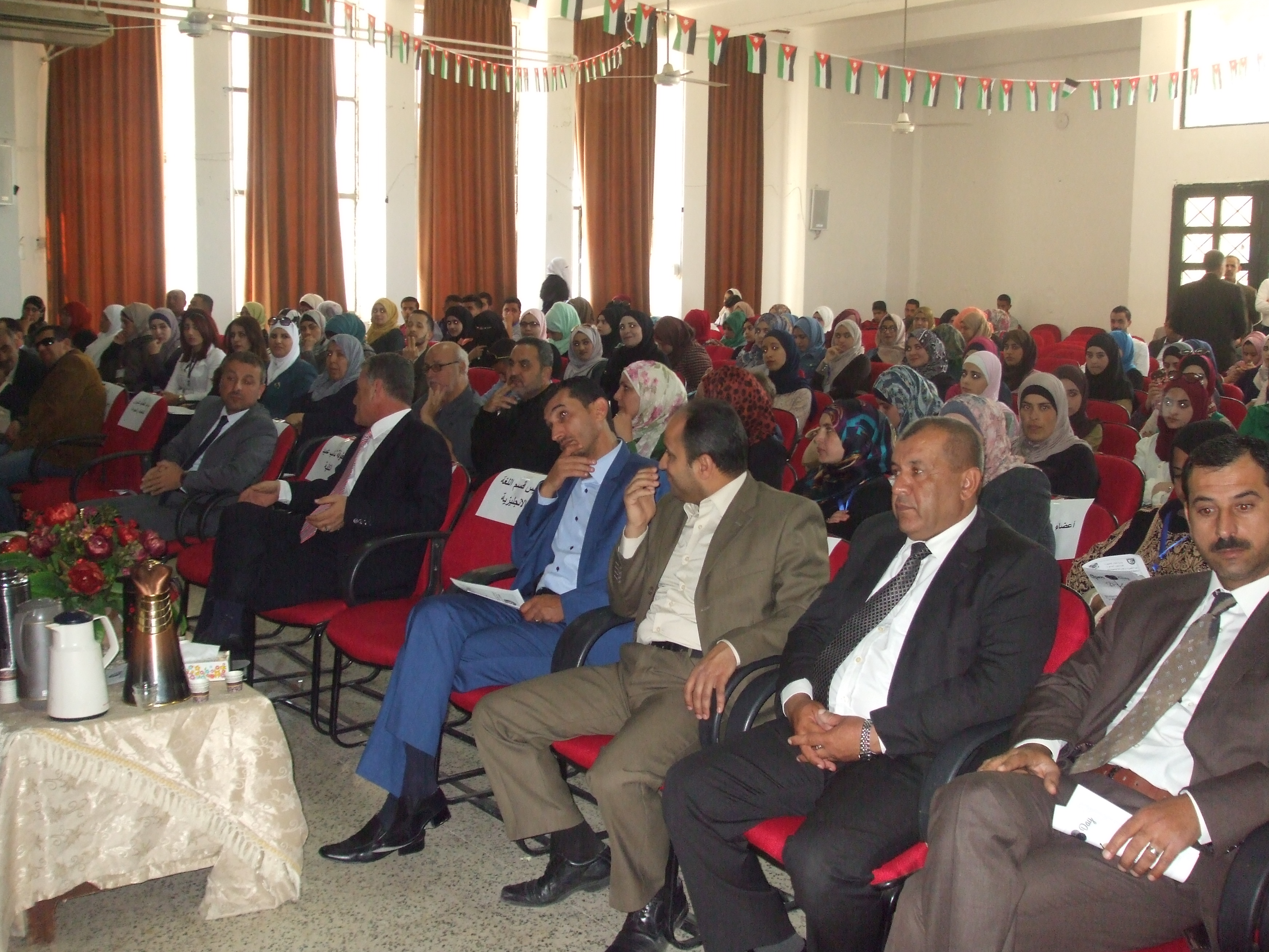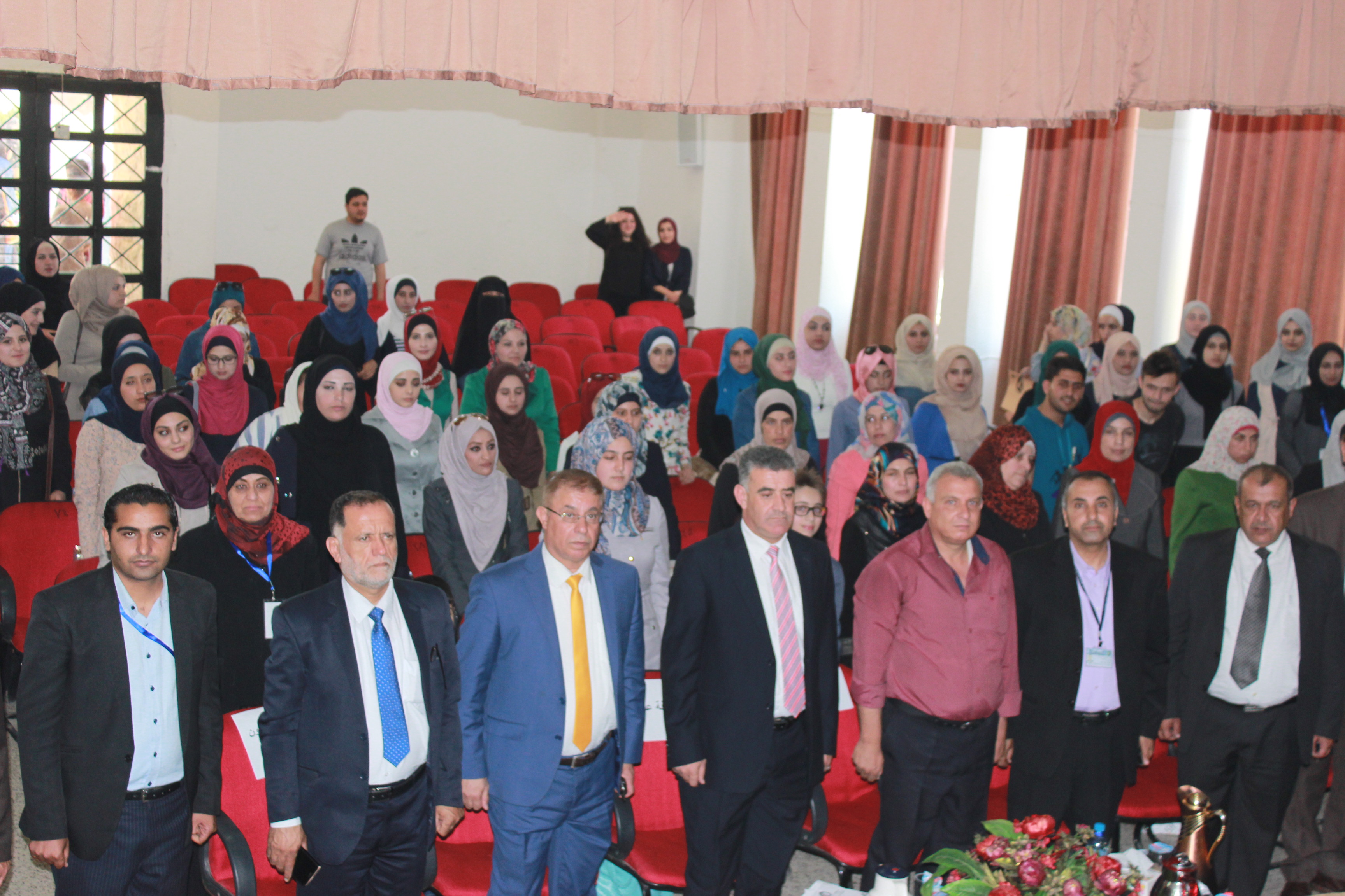 بحضور نائب العميد الاستاذ الدكتور محمد حسينات ومساعديه والدكتورامجد السيوف رئيس قسم اللغة الانجليزية واعضاء الهيئة التدريسية في القسم واعضاء الهيئة الادارية في الكلية حيث القى الدكتور نضال الاحمد كلمة هنأ فيها الطلبة المتوقع تخرجهم وذويهم وشكر اساتذة القسم على جهودهم التي بذلوها على مدار أربع سنوات في تأهيل هؤلاء الكوكبة من الطلبة وتزويدهم بالعلم النافع وصقل عقولهم وتوجيههم الى سبيل الرشاد .