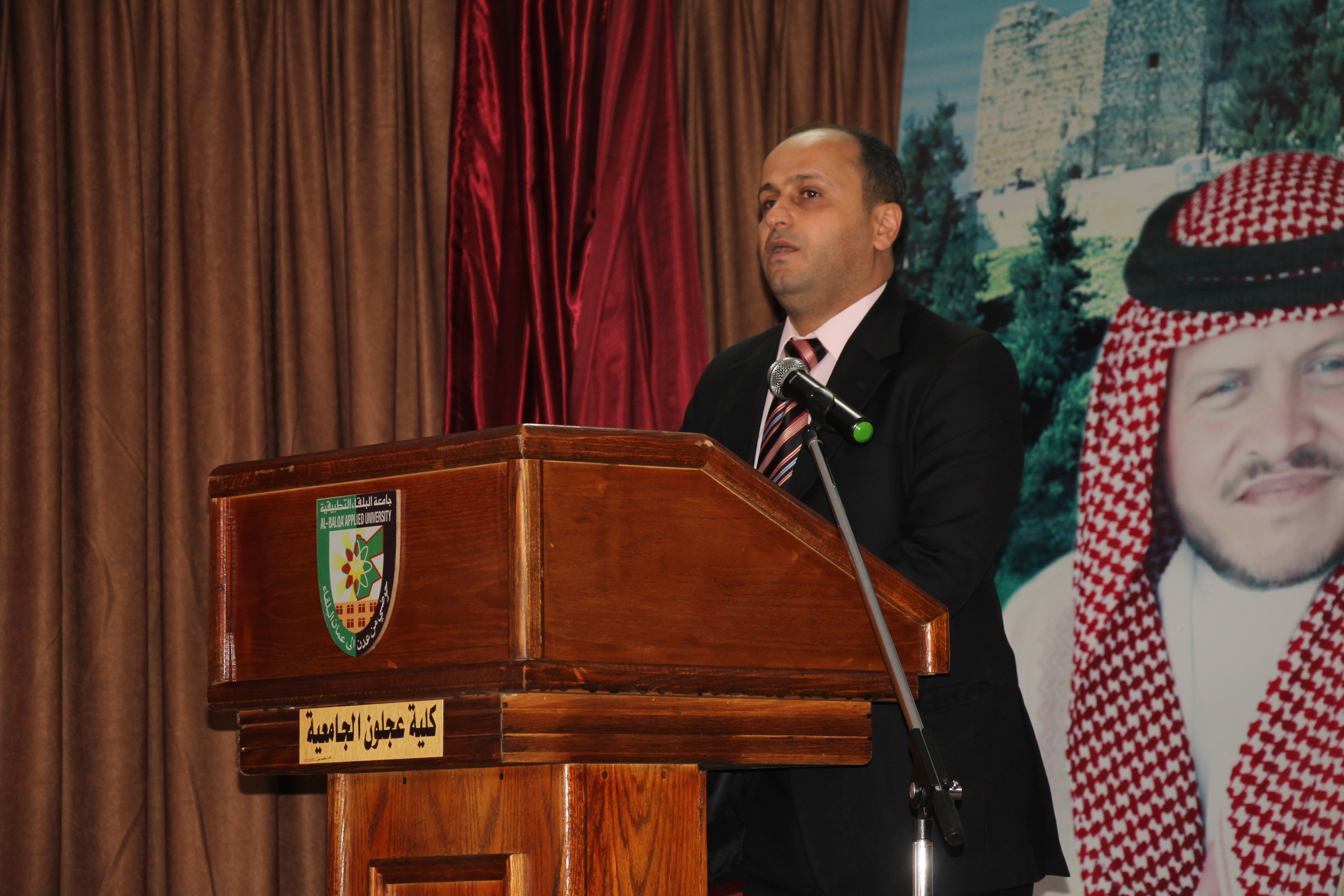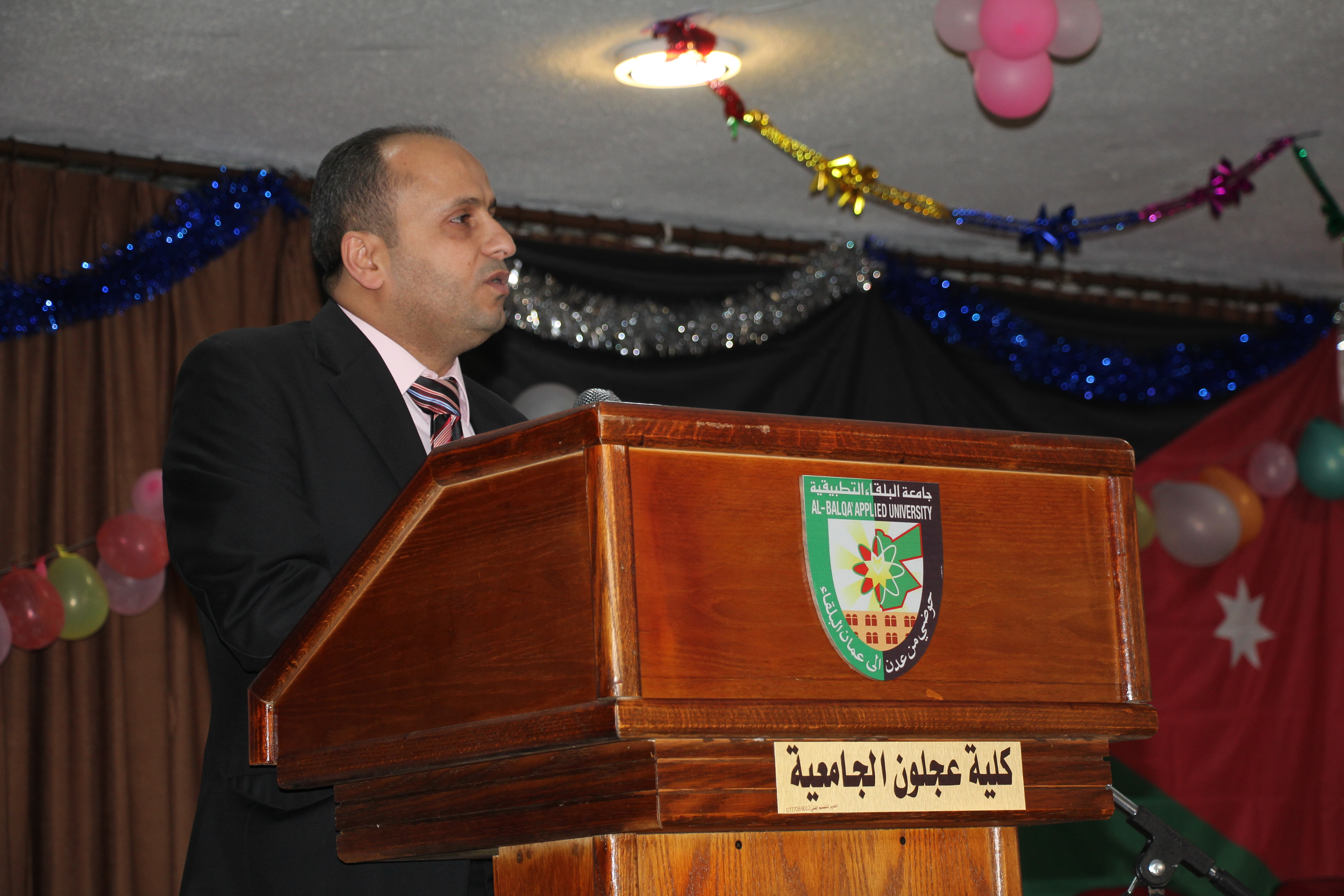 وبدأ الحفل بالسلام الملكي بآيات من الذكر الحكيم، وألقى عميد الكلية الدكتور نضال الأحمد كلمة بهذه المناسبه هنأ فيها الطلبة المتوقع تخرجهم وذويهم وشكرهم على هذا النشاط الفعال الذي يساهم على تزويدهم بالعلم النافع وحقن عقولهم وتوجيهم الى سبيل الرشاد وشكر عميد الكلية المدرسين والإداريين بشكل عام واساتذة قسم العلوم التطبيقية بشكل خاص على مدار أربعة سنوات في تأهيل هذه الموكبة من الطلبة.