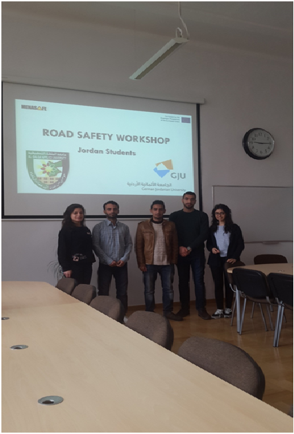 وعلى هامش الاجتماع شارك الطالب يزن العتوم من قسم الهندسة المدنية والطالب باسل البدر من كلية الهندسة التكنولوجية في ورشة عمل لمدة اسبوعين في بولندا في نفس الجامعه حيث قاموا بالاطلاع والتدريب على احدث البرامج الهندسية في مجال السلامة المرورية و بعد ذلك تم تكليفهم بايجاد الحلول لمشاكل احد التقاطعات الخطره في مدينة جدانسك في بولندا ومن ثم قاموا باعطاء محاضره للدول المشاركه عن الحلول المقترحه للمشاكل المرورية على هذا التقاطع بالاضافة الى عرض مختصر عن احصائيات الحوادث في الأردن.