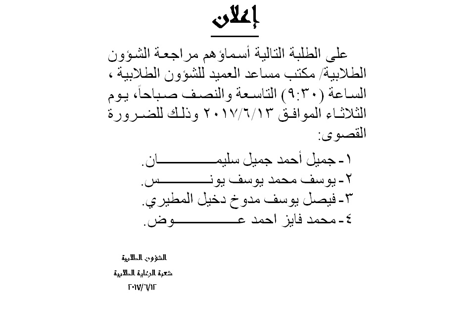 إعـــلان هام لتسليــم وثائـــق الطلبـــة المستجــديــن بواسطة