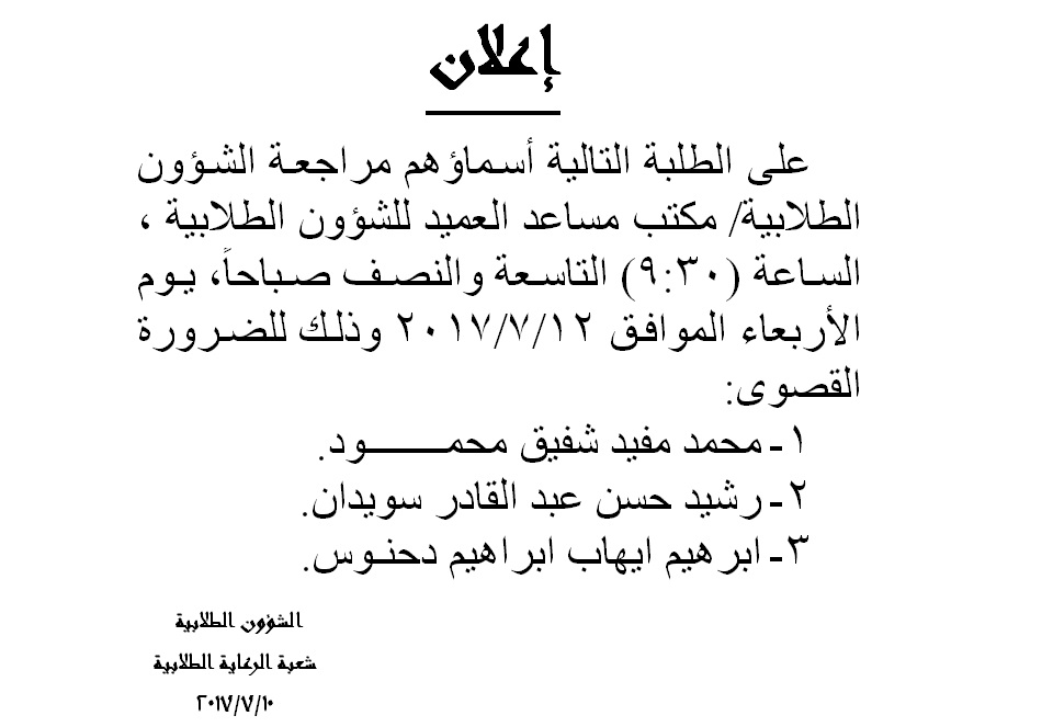 إعـــلان هام لتسليــم وثائـــق الطلبـــة المستجــديــن بواسطة