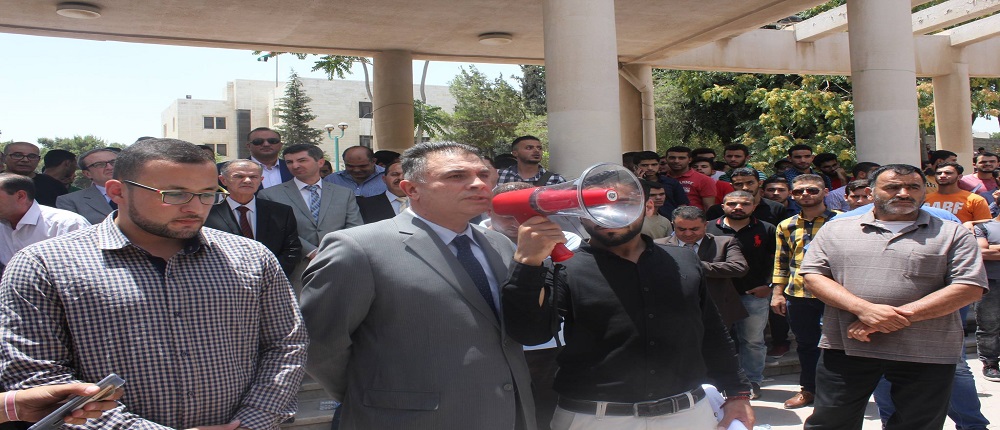 وقد حضر الوقفة الاحتجاجية التي سادها هتافات من الطلبة ضد الإجراءات الإسرائيلية والإشادة بالأردن قيادة هاشمية وشعبا بالوقوف ضد الإجراءات الإسرائيلية جميع نواب رئيس الجامعة وجميع أعضاء مجلس العمداء لكافة الكليات وأسرة الكلية لأن هذه الوقفة تعبر عن رأي جميع كليات الجامعة في مركزها في السلط وكلياتها في الميدان من العقبه جنوبا إلى اربد شمالا.