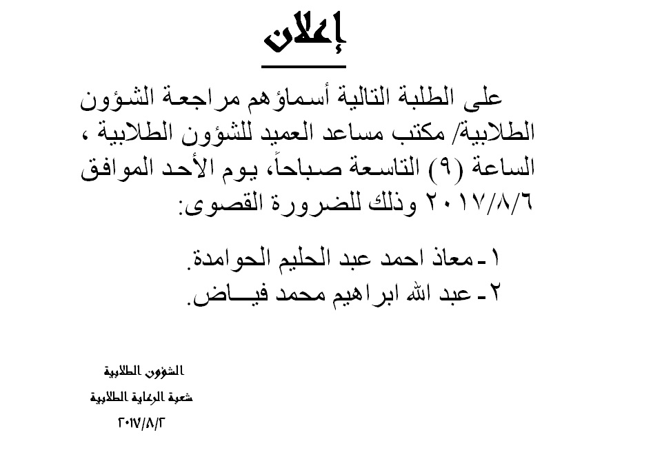 إعـــلان هام لتسليــم وثائـــق الطلبـــة المستجــديــن بواسطة