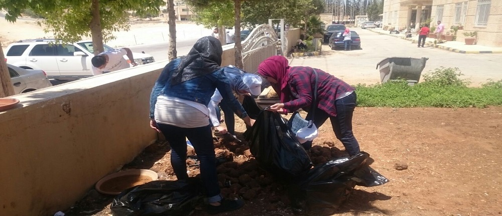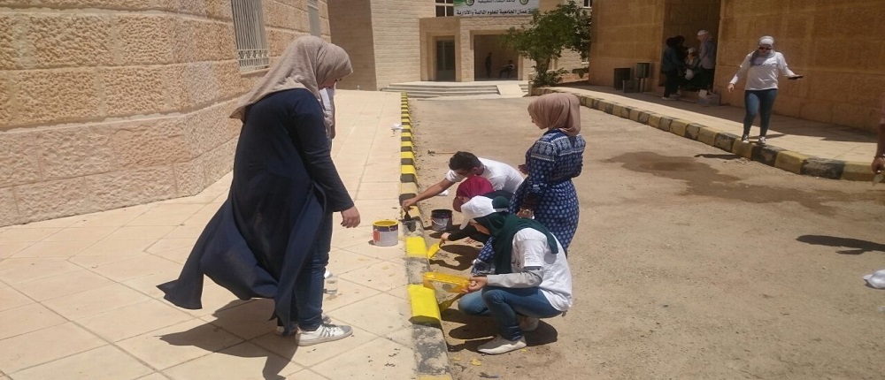 حيث اشتملت الحملة على أعمال نظافة عامة لمباني الكلية الجديدة في منطقة شفا بدران .
