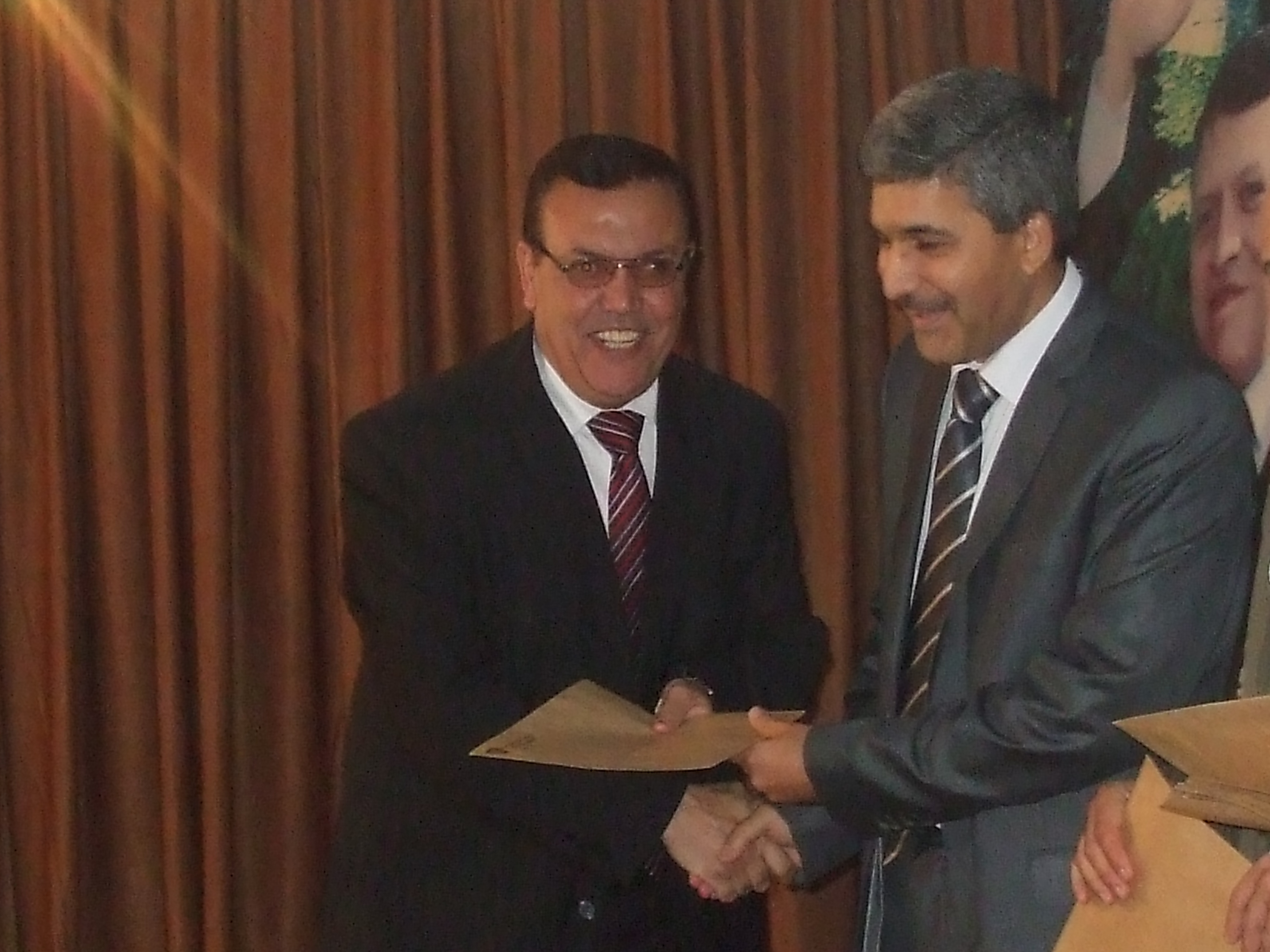 وفي نهاية اليوم العلمي استعرض المدرس ايمن فريحات التوصيات العلمية التي نتجت من اليوم العلمي وقام عميد الكلية الاستاذ الدكتور عبد المطلب الخضراوي بتوزيع الشهادات على المشاركين والجهات الداعمة لهذا النشاط العلمي .