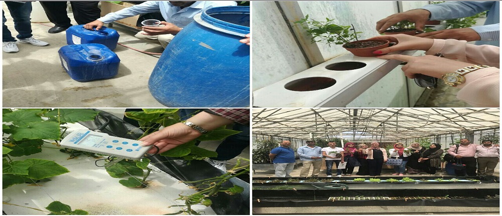كما تضمنت الدورة رحلة ميدانية للمتدربين إلى موقع مشروع الزراعة المائية في المركز الوطني للبحث والإرشاد الزراعي للتعرف على المعدات المستخدمة في تصنيع الأحواض ومقاييس الأنابيب والهياكل المستخدمة في الزراعة دون تربة فمنها الهرمي ومنها الطبقي ومنها ما هو على شكل مكعبات، كما تم التعرف على تقنيات الزراعة المائية المختلفة كالزراعة المائية العميقة والزراعة باستخدام التف البركاني والزراعة باستخدام البيتموس والبيريلايت والزراعة باستخدام تقنية الشريط.