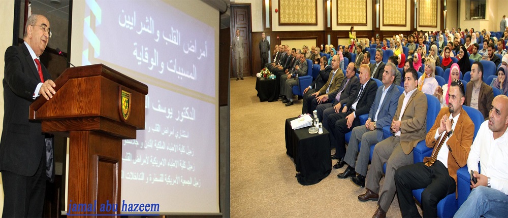 وفي نهاية المحاضرة التي نظمتها وحدة التنمية وخدمة المجتمع المحلي في الجامعة وحضرها الاستاذ الدكتور حمدان العواملة نائب الرئيس للشؤون الادارية ونائب الرئيس للشوون البحث العلمي عميد كلية الطب الاستاذ الدكتور زياد جريسات وعدد من طلبة الكلية وأعضاء الهيئتين التدريسية والادارية في الجامعة قدم الدكتور الزيود درع الجامعة للدكتور القسوس شاكراً له ما قدمه من معلومات توعوية للوقاية من أمراض القلب في مجتمعنا.