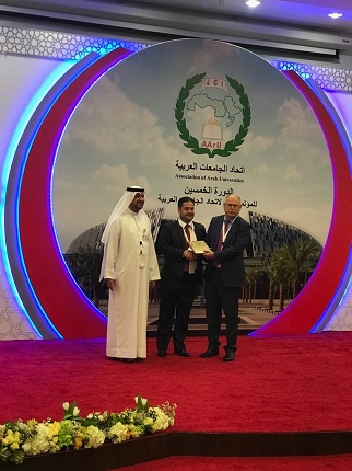 تم تكريم الاستاذ الدكتور صدام شحادة العوايشه الفائز بجائزة الباحث العربي المتميز للعام 2017 وذلك في احتفالية خاصة أقيمت في دولة الامارات العربية المتحدة اثناء انعقاد المؤتمر العام لاتحاد الجامعات العربية في جامعة الامارات العربية وبرعاية الاستاذ الدكتور محمد البيلي رئيس جامعة الامارات العربية المتحدة (العين) وحضور رؤساء الجامعات العربية الحكومية والخاصة. حيث قام الاستاذ الدكتور سلطان ابوعرابي الامين العام لاتحاد الجامعات العربية بتسليم درع وجائزة الاتحاد للاستاذ الدكتور العوايشة.