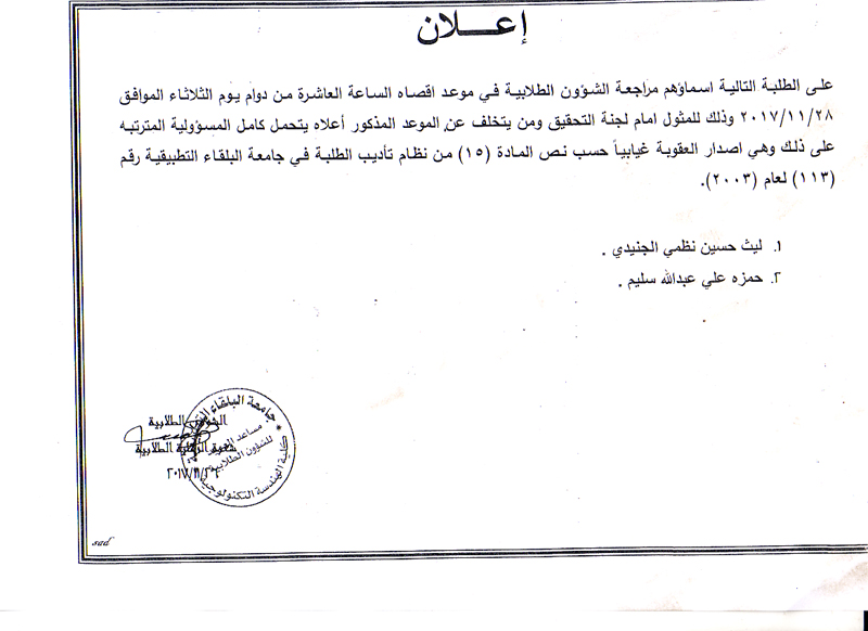 حفل استقبال الطلبة المستجدين في كلية الحصن الجامعية/ جامعة البلقاء التطبيقية بواسطة