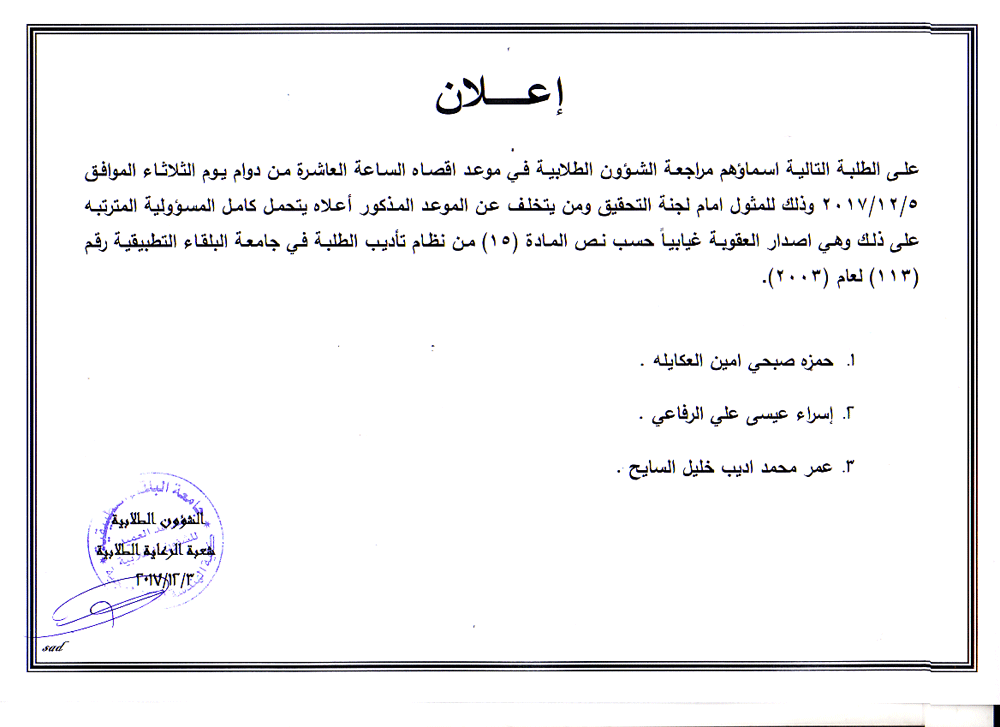 حفل استقبال الطلبة المستجدين في كلية الحصن الجامعية/ جامعة البلقاء التطبيقية بواسطة