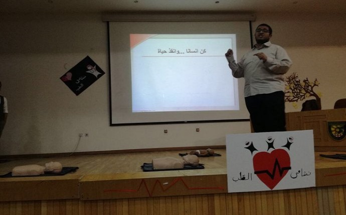 نظم نادي نشامى الطب في جامعة البلقاء التطبيقية دورة تناولت أساليب الإسعافات الأولية والإنعاش القلبي على مسرح كلية العلوم في الجامعة.