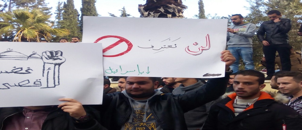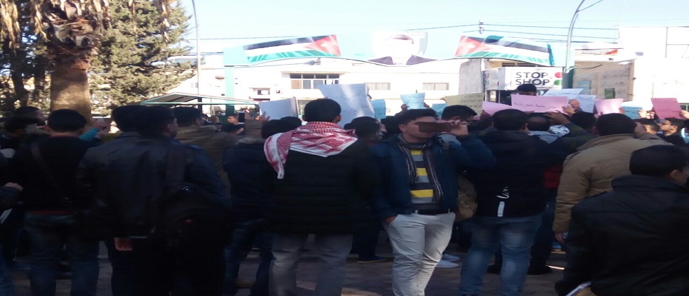 وردد الطلبه هتافات دعت الى الوقوف بجانب القدس الشريف واكد الطلبة ان قضيه القدس قضية عربيه تعني الاردن اكثر من غيره نظرا للالتصاق التاريخي ما بين الاردن وفلسطين.