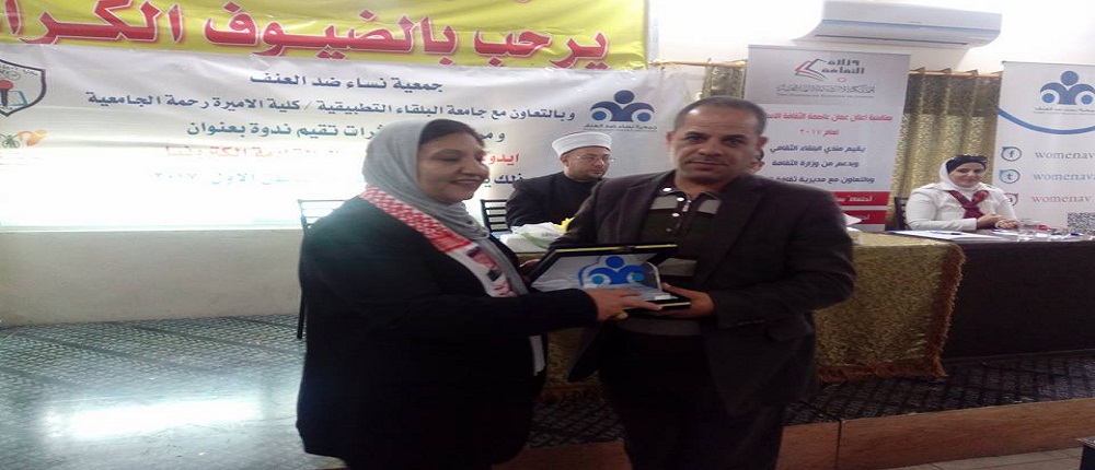 مندوبا عن عميد كلية الأميرة رحمة الجامعية الأستاذ الدكتور بشير العلوان رعى نائب العميد الدكتور مزيد حياصات الندوة الحوارية التشاركية التي نظمها قسم الخدمة الاجتماعية بعنوان( ايدولوجية تنمية الأجيال القادمة الكترونيا) بالتعاون مع مركز جابر العثرات وجمعية نساء ضد العنف لطلبة التدريب الميداني ضمن مساق العمل الاجتماعي التطوع للدكتورة لبنى العضايله .تناولت الندوة عدة محاور ومداخلات من المشاركين والضيوف وهم الإعلامي الأستاذ بسام الرقاد ومفتي البلقاء هاني العابد والسيدة خلود خريس من جمعية نساء ضد العنف والدكتورة نسرين الكركي من الكلية وحضور رئيس قسم الخدمة الاجتماعية الدكتور جهاد السعايده ..من أهم المواضيع التي تم طرحها سلبيات وايجابيات وسائل التواصل الاجتماعي في بناء جيل المستقبل وأسباب انتشار حالات الطلاق في الأردن واثر الإرهاب بشتى أنواعه على مجتمعنا وغياب الوعي الثقافي لدى الكثير من الأسر والإدمان على مشاهدة الأفلام الإباحية وأثرها السلبي وغيرها العديد من الموضوعات والقضايا التي تمس مجتمعنا... تم في نهاية الندوة فتح باب الحوار مع الحضور وتكريم الدكتور علي أبو رمان مؤسس مركز جابر العثرات والدكتور جهاد السعايدة مندوبا عن عميد الكلية من جمعية نساء ضد العنف .