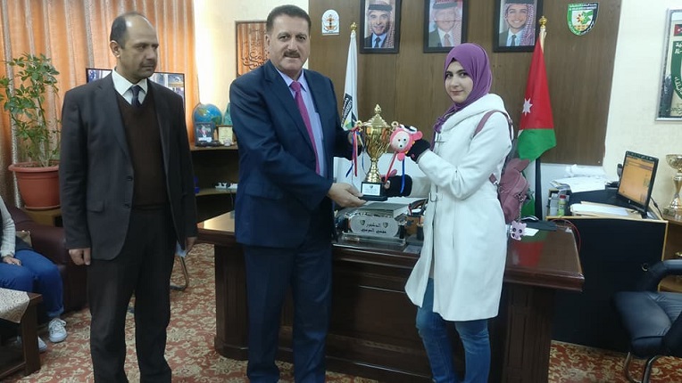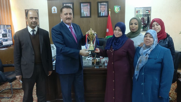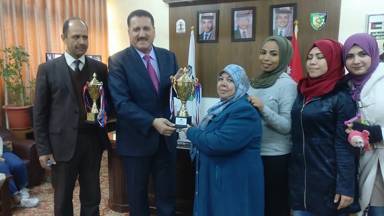 قدّم فريقيّ كلية اربد الجامعية لعميد الكلية الدكتور مفضي المومني كأسيّ المركز الاول لبطولتي الشطرنج والكرة الشاطئية والذي فازا به الفريقين بفعاليات بطولات اتحاد الكليات الجامعية والجامعية المتوسطة بحضور نائب العميد ومساعديه وقسم النشاطات الطلابية في الكلية.