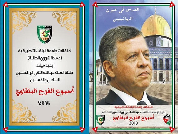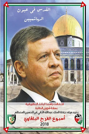 بمناسبة احتفالات جامعة البلقاء التطبيقية بعيد ميلاد الملك عبدالله الثاني ابن الحسين المعظم وتحت رعاية رئيس الجامعة الاستاذ الدكتور عبدالله سرور الزعبي تنظم عمادة شؤون الطلبة اسبوع الفرح