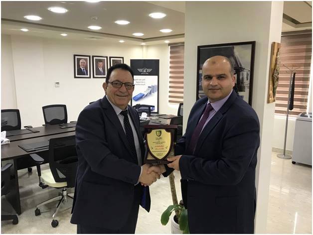 مندوبا عن عميد كلية الهندسة في جامعة البلقاء التطبيقية قام الدكتور ابراهيم هاشم خليفات بزيارة لشركة النقليات السياحية الأردنية جت لتقديم الشكر لمعالي المهندس مالك حداد لتبرعه لكلية الهندسة من اجل القيام بأعمال صيانة الجدران الداخلية للكلية ولشكره على جهوده المبذوله في تقديم الدعم لجامعة البلقاء و خدمة العملية التعليميه في مجال هندسة النقل في قسم الهندسة المدنية وذلك من اجل تعزيز العملية التشاركية ورؤى جلالة الملك المعظم في مجال التعاون ما بين المؤسسات التعليمية والقطاع الخاص.