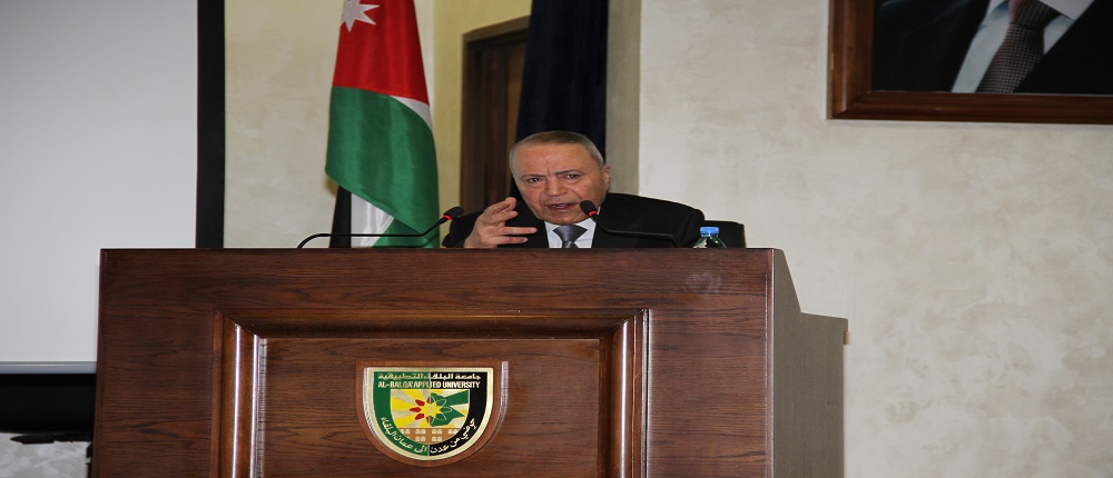وكان الاستاذ الدكتور عبدالله سرور الزعبي رئيس جامعة البلقاء التطبيقية قد القى كلمة بين فيها بأن احتفلات جامعة البلقاء التطبيقية بمناسبة عيد ميلاد جلالة الملك عبدالله الثاني ابن الحسين المعظم بعنوان (القدس في عيون الهاشميين ) حيث تفتخر الجامعة بأنها من نفذت التوجيهات الملكية السامية ببناء منبر صلاح الدين في القدس وانها اليوم تستمع الى محاضرة من الدكتور معروف البخيت كمفكر استراتيجي وجنديا من جنود قائدنا الملك عبدالله الثاني المعظم القائد الاعلى للقوات المسلحة.