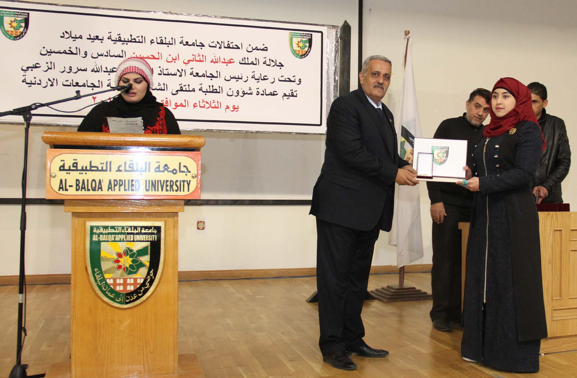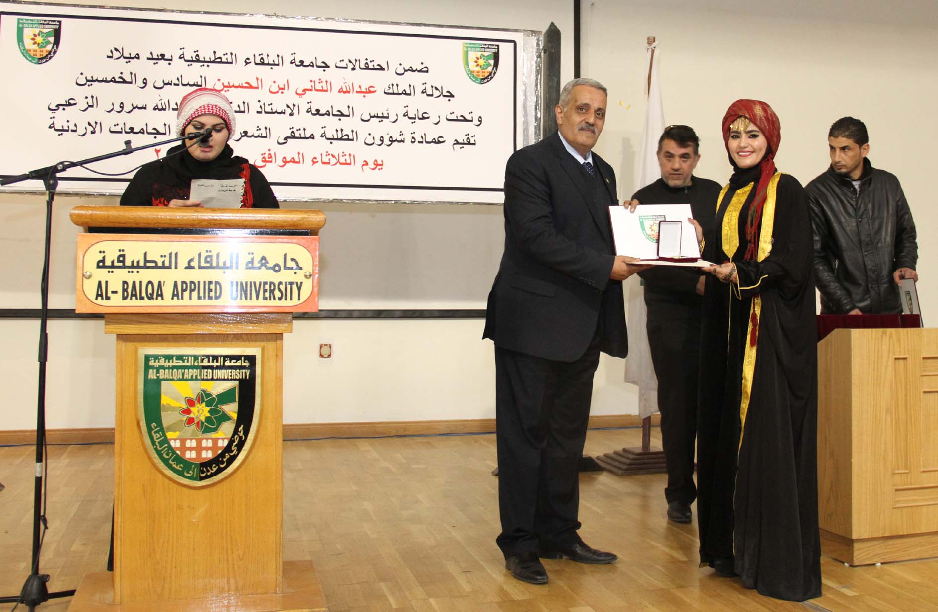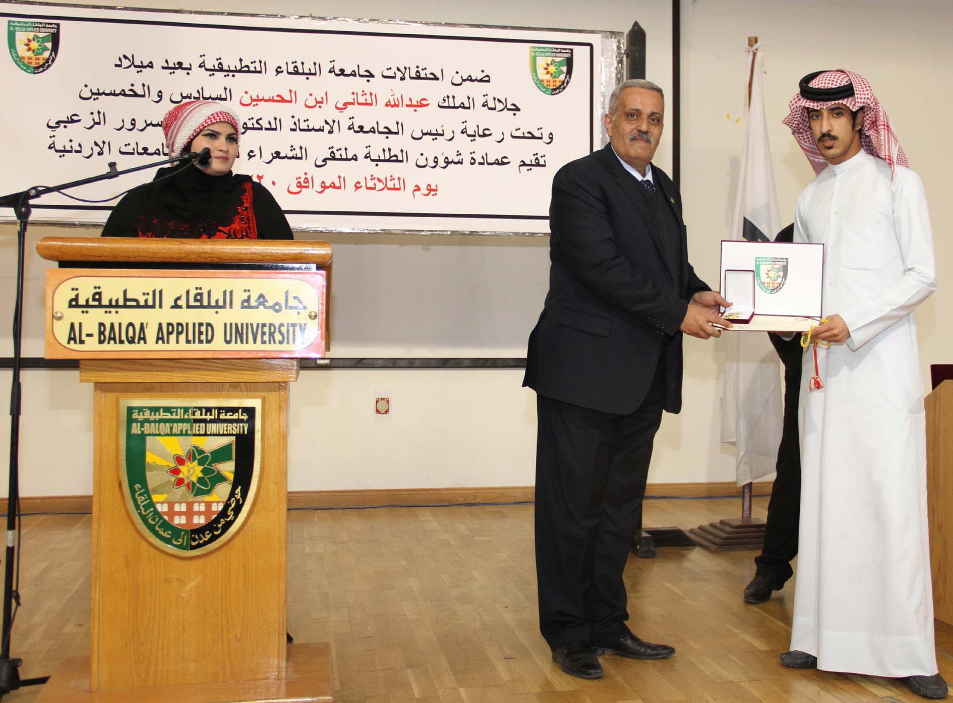 وفي نهاية فعاليات الملتقى الذي قدمته الطالبة شذى الحويطات، كرم الدكتور الحياري الطلبة المشاركين بشهادات تكريم ودروعٍ، مؤكداً على ما يتمتع به الطلبة من ملكةٍ شعريةٍ تعبر عن مشاعر صادقة لقائد الوطن.