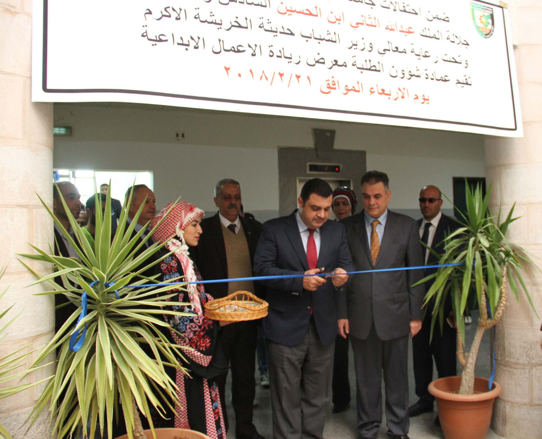 وعلى هامش المحاضرة التي حضرها نواب رئيس الجامعة وعدد من المسؤولين في وزارة الشباب وطلبة الجامعة افتتح وزير الشباب ورئيس الجامعة معرضا لريادة الاعمال الابداعية المتضمن مشاريع بحثية ومشاريع تخرج ونتاجات طلابية من مختلف كليات الجامعة كمشاريع حصل بعضها على براءات الاختراع والربوتات ومشروع التخلص من الزيوت العادمة باستخدم مواد ممتصة رخيصة الثمن ومشاريع متميزة اخرى.