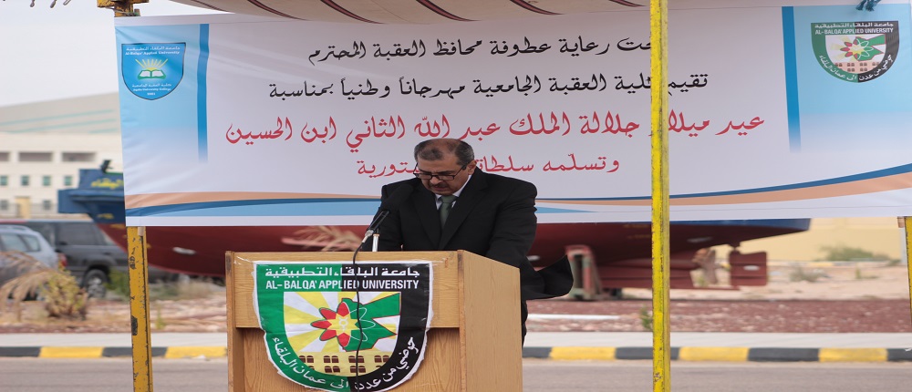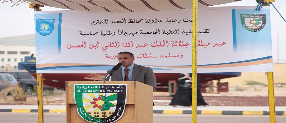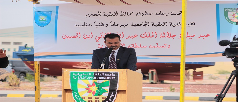 تحت رعاية محافظ العقبة الاكرم اقامت كلية العقبة الجامعية مهرجانا وطنياً بمناسبة عيد ميلاد جلالة الملك عبدالله الثاني ابن الحسين وتوليه سلطاته الدستورية حيث قد اشتمل المهرجان على العديد من الفقرات والانشطة وفي الكلمة التي القاها عميد كلية العقبة الجامعية الدكتور بندر ابو تايه قال فيها " نجتمع اليوم في هذا المكان ، لنستحضر معا تلك اللحظة التاريخيّة الخالدة، التي شهدت ميلادَ فجرٍ جديدٍ، هو فجرُ عبدالله الثاني ابن الحسين، هذا الفجرُ العربي الهاشميّ الذي يستمدّ بهاءه ونورَه من مسيرةِ آل البيتِ الأطهار، سادةِ الأمةِ ومصابيح الهدى، وَرَثةِ لواءِ النهضةِ الكبرى، وحَمَلةِ رسالةِ الإسلام السمح المعتدل".