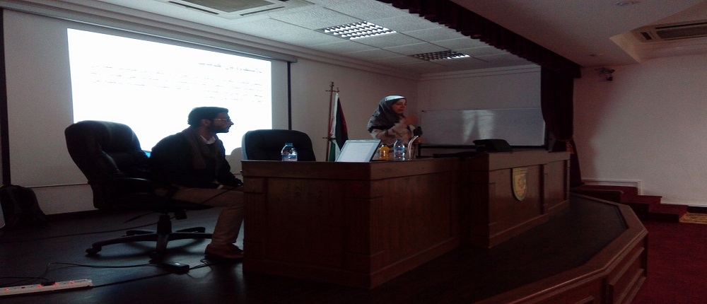 ( دور الأخصائي الاجتماعي في التعامل مع اللاجئين)  قدمها محاضرون من مركز ضحايا التعذيب وذلك ضمن مادة مشكلات اجتماعية للدكتورة لبنى العضايله  تهدف الى تعريف الطلبة بالمراكز المعنية في الأردن بهذا الجانب من جهة، وتعزيز معرفتهم بدور الاخصائي الاجتماعي في برامج التأهيل النفسي المقدمة للناجيين من الحروب والتعذيب من مجتمع  اللاجئين في الاردن من جهة مماثلة، الأمر الذي يأتي  تماشيا مع التطبيق العملي للمواد النظرية التي يدرسها الطلبة في قسم الخدمة .