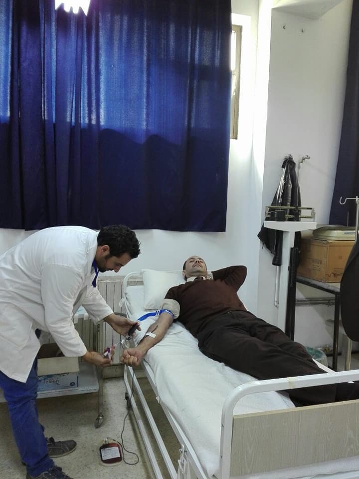 واشتملت الحملة على فحص للضغط والسكري وتحديد زمرة الدم بالإضافة إلى التبرع بالدم.