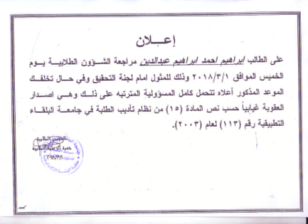 حفل استقبال الطلبة المستجدين في كلية الحصن الجامعية/ جامعة البلقاء التطبيقية بواسطة
