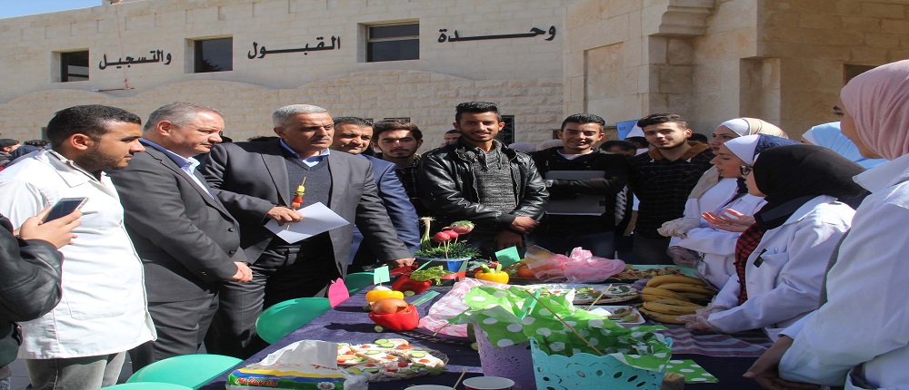 رعى الدكتور معاذ الحيارى عميد شؤون الطلبة فعاليات اليوم التغذوي لطلبة قسم التغذية والتصنيع الغذائي في كلية الزراعة التكنولوجية بحضور الدكتور فادي سماوي نائب عميد شؤون الطلبة وعدد من مدراء الدوائر في عمادة شؤون الطلبة.