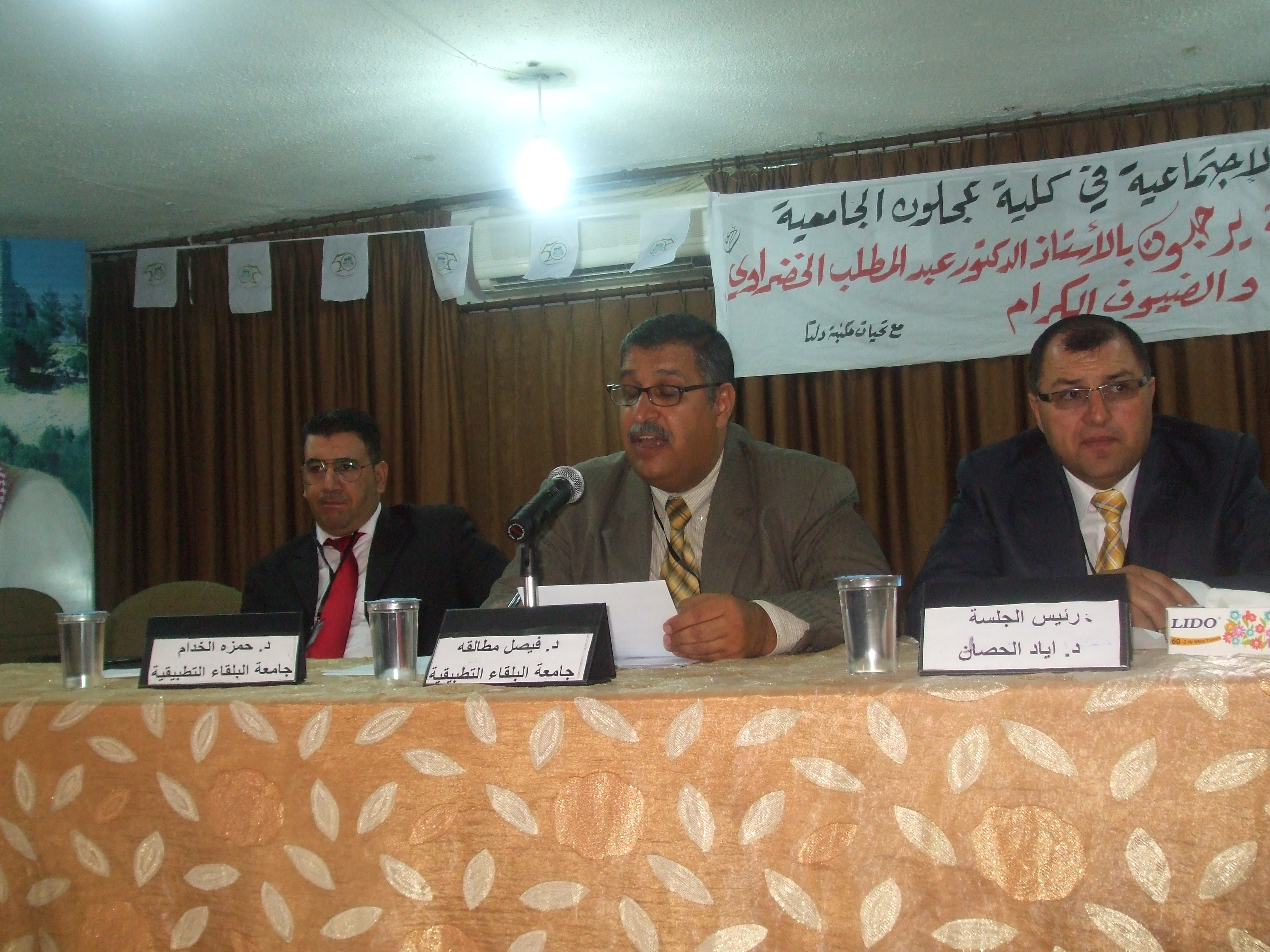 رعى عميد كلية عجلون الجامعية أ.د. عبد المطلب الخضراوي فعاليات اليوم العلمي الذي نظمه قسم العلوم الإجتماعية إحتفاء بالأعياد الوطنية بعنوان العنف المجتمعي ومناهضة التعذيب بحضور أكادميين وطلبه الكليه .