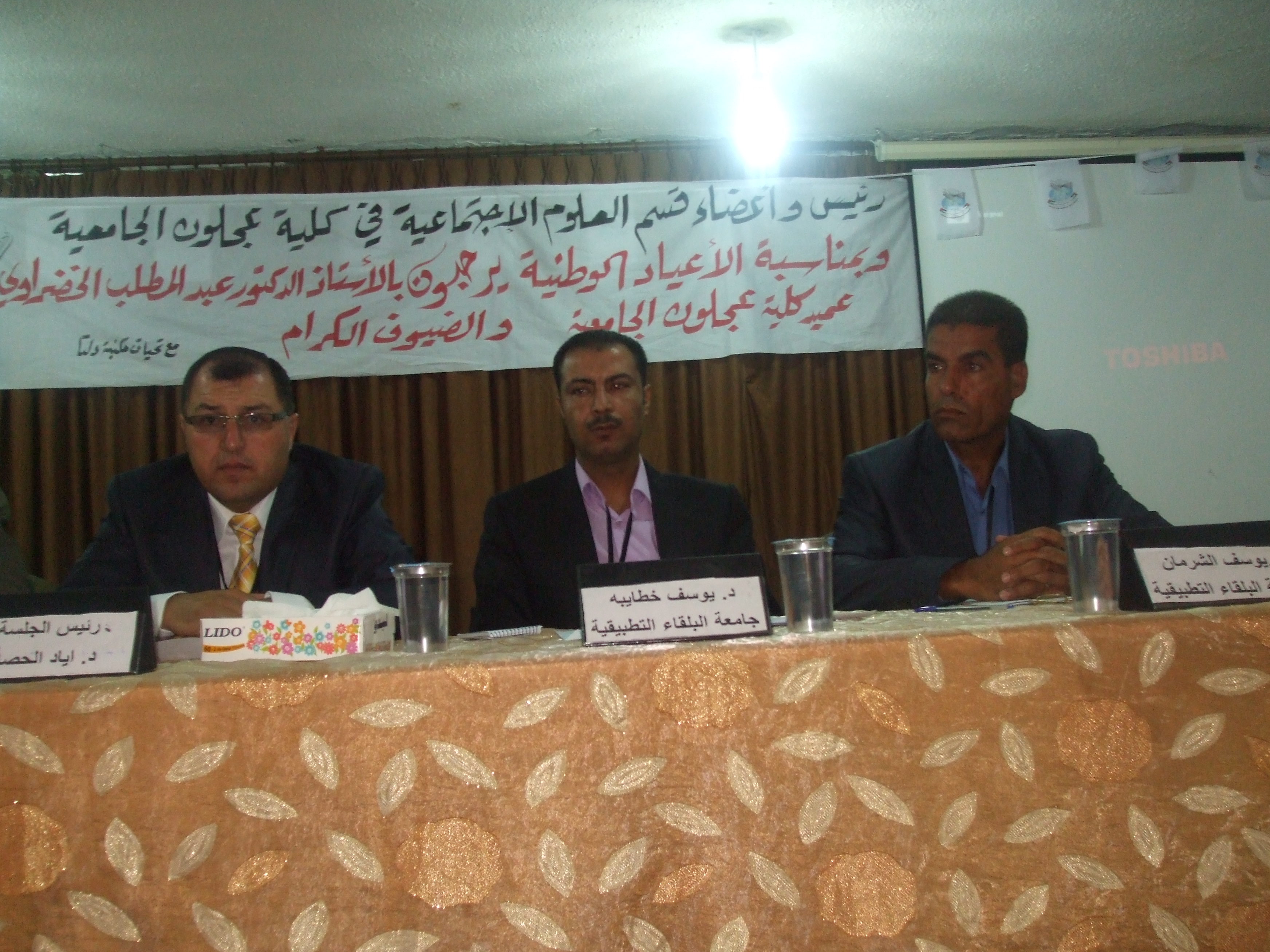 من جانبه قال رئيس قسم العلوم الإجتماعية الدكتور علاء الرواشده أن هذا اليوم العلمي يأتي إحتفاء بالأعياد الوطنيه حيث يركز اليوم العلمي على مناقشه ظاهره العنف المجتمعي والتعذيب والوقف على دوافع العنف للخروج بحلول جذريه من خلال تحليل الظاهرة التي أصبحت تقلق الأوساط المجتمعية في هذا الوطن العزيز وتؤثر سلباً على مستقبله ومستقبل أبنائه مقدماً شكره لكل الداعمين لهذا اليوم العلمي من داخل الكليه وخارجها.