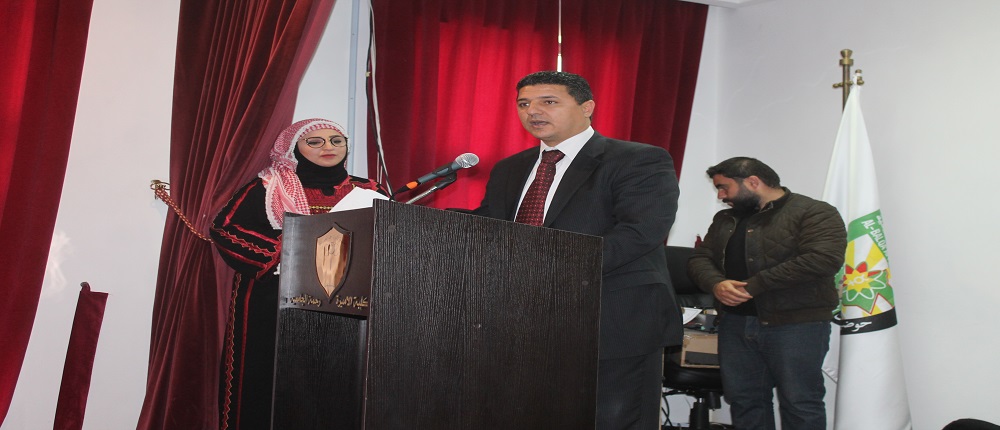 برعاية عميد الكلية الاستاذ الدكتور بشير العلوان وبحضور نائب العميد والمساعدين وعدد من وجهاء المجتمع المحلي ، بدأ الاحتفال بكلمة راعي الحفل عميد الكلية معربا فيها عن اهمية تلك المناسبة في