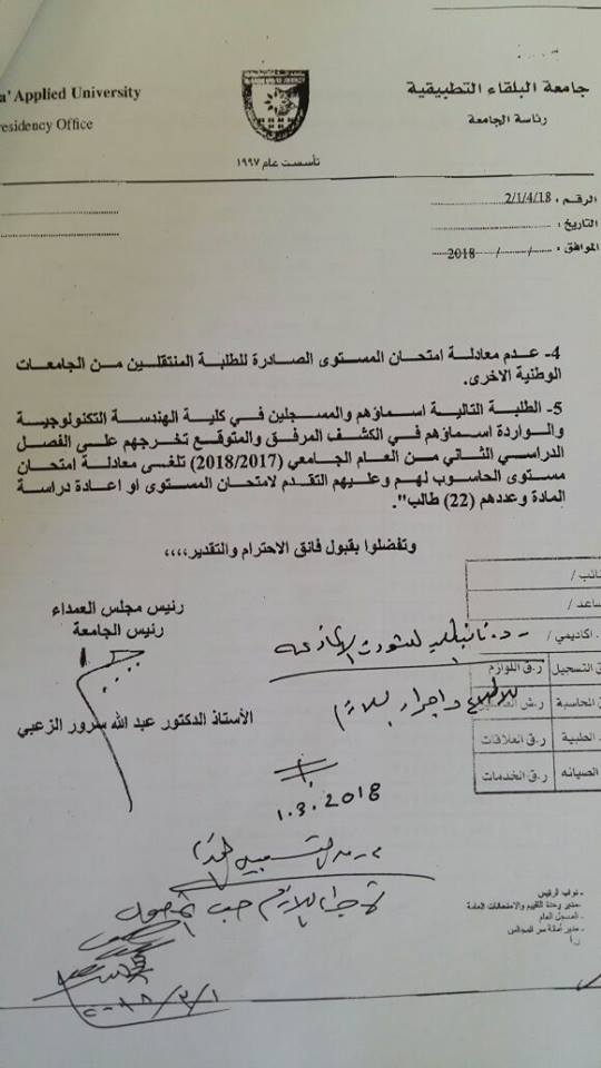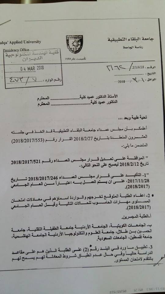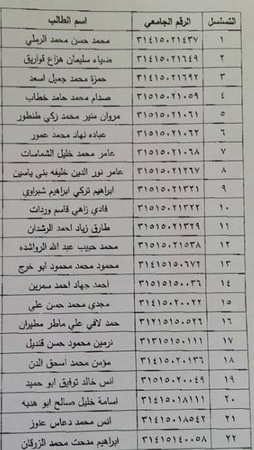على الطلبة المرفق اسمائهم مراجعة قسم القبول والتسجيل