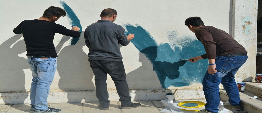 وقام الطلبة المشاركون بطلاء عددٍ من جدران الكلية" المبنى التجاري" ، بالإضافة الى رسم جداريات تحاكي تخصصات الكلية وتحث الطلبة على العلم والتعلم.