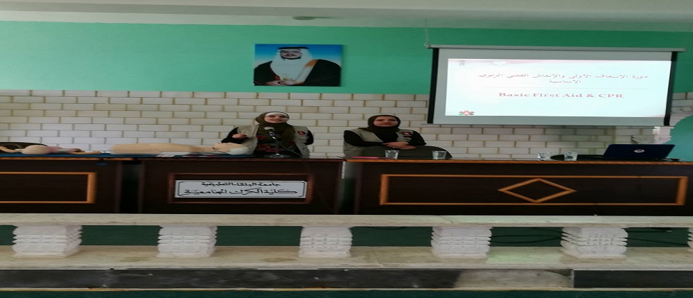 نظمت كلية الكرك الجامعية وبالتعاون مع الجمعية الاردنية للاسعاف /المركز التدريبي محاضرة بعنوان ( نشر ثقافة الاسعاف ) تهدف الى اكساب وتعريف المشاركين من اعضاء هيئة تدريسية وإدارية وطلبة بالمهارات والأساليب الحديثة في السلامة العامة والقواعد العامة للإسعافات الاولية