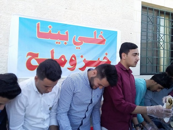 نظم قسم العلوم الاساسية في كلية معان وبإشراف المدرسة "إخلاص عبدالله كريشان" نشاط بعنوان "خلي بينا خبز وملح" اليوم الأربعاء الموافق 14/3/2018، وذلك ضمن الأنشطة المقررة في الخطة الدراسية لمادة المواطنة الإيجابية ومهارات الحياة.