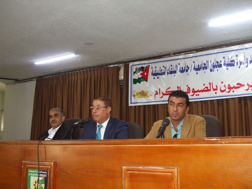 وفي بداية اللقاء رحب عميد الكلية بالطلبة المستجدين في الكلية مباركا لهم نجاحهم في الشهاده الثانوية وقبولهم في جامعة البلقاء التطبيقية /كلية عجلون الجامعية وانتقالهم إلى مرحلة دراسية جديدة أساسها العلم والتعلم ومتمنيا لهم التقدم والنجاح .