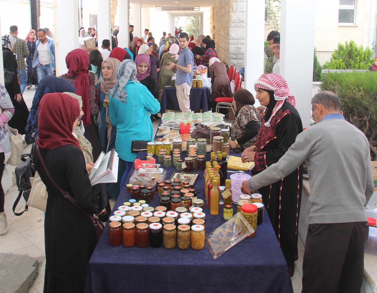 وعلى هامش اليوم الوظيفي الاول الذي نظمته عمادة شؤون الطلبة تم افتتاح معرض التشغيل الذاتي للسيدات الذي عرض فيه العديد من المنتجات المنزلية والغذائية وشهد اقبالا كبيرا من الطلبة والموظفين في الجامعة.