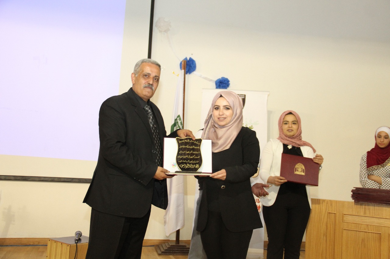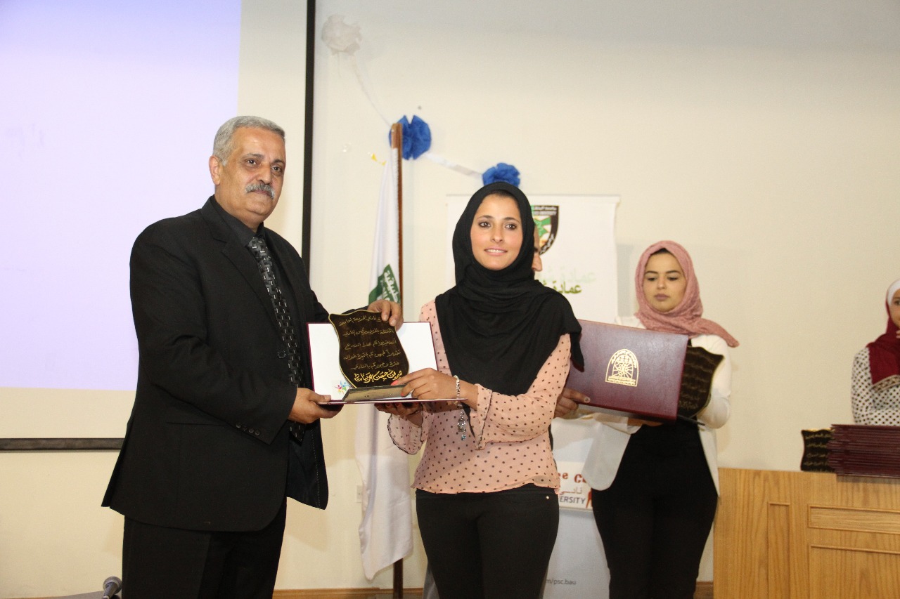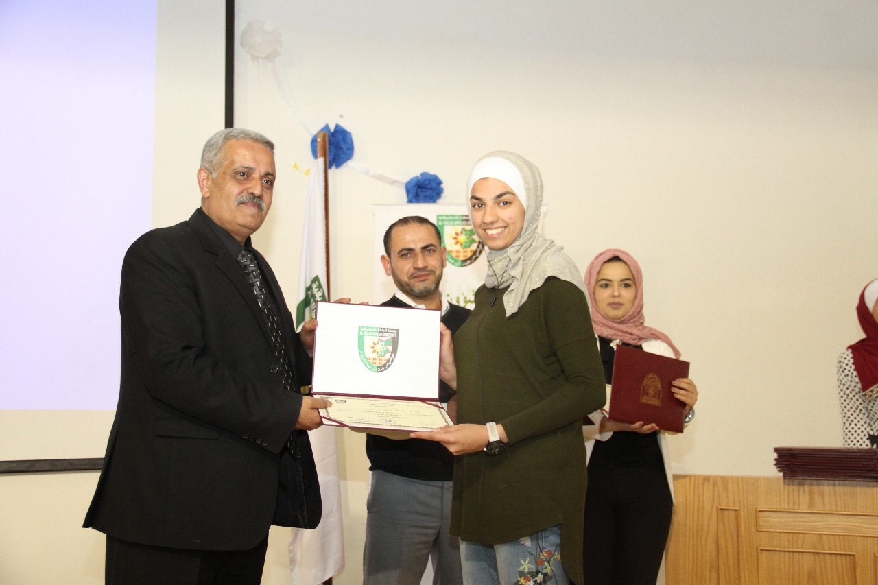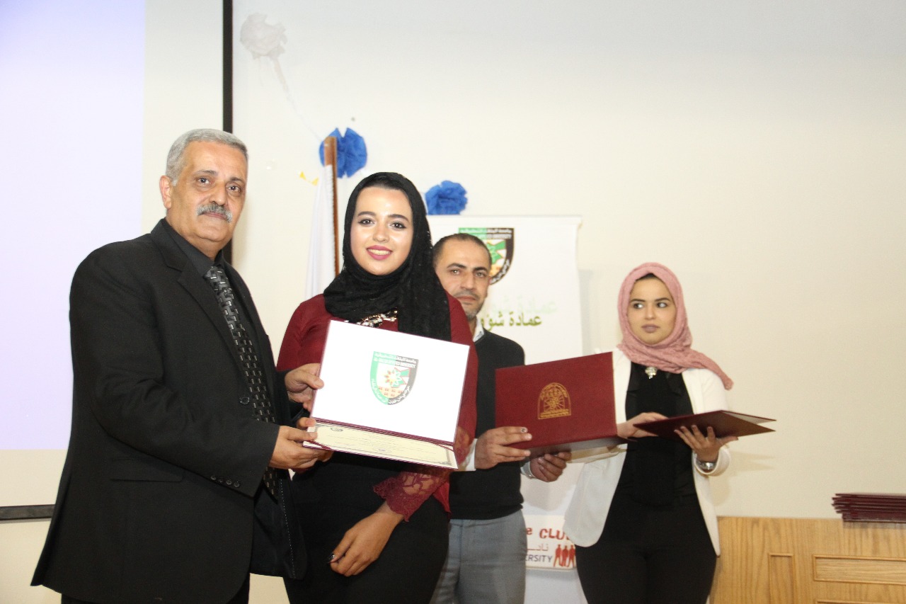 و بينت رئيسة النادي الطالبة رزان أبوالراغب خلال الحفل ،ان النادي تأسس عام 1997 استمر في عمله جيلاً فجيلا بتعاون الطلبة.